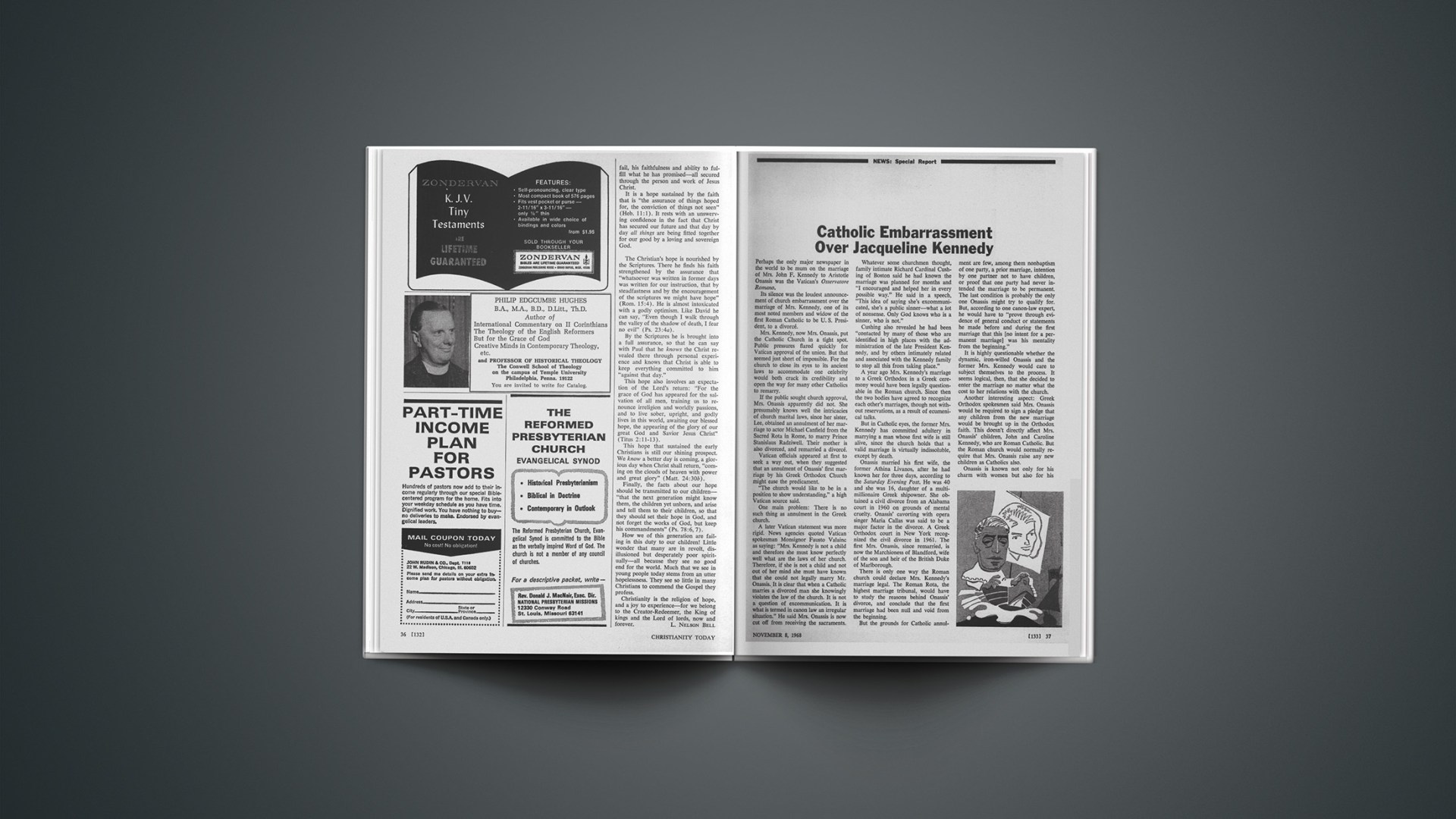 Mrs. Kennedy, now Mrs. Onassis, put the Catholic Church in a tight spot. Public pressures flared quickly for Vatican approval of the union. But that seemed just short of impossible. For the church to close its eyes to its ancient laws to accommodate one celebrity would both crack its credibility and open the way for many other Catholics to remarry.