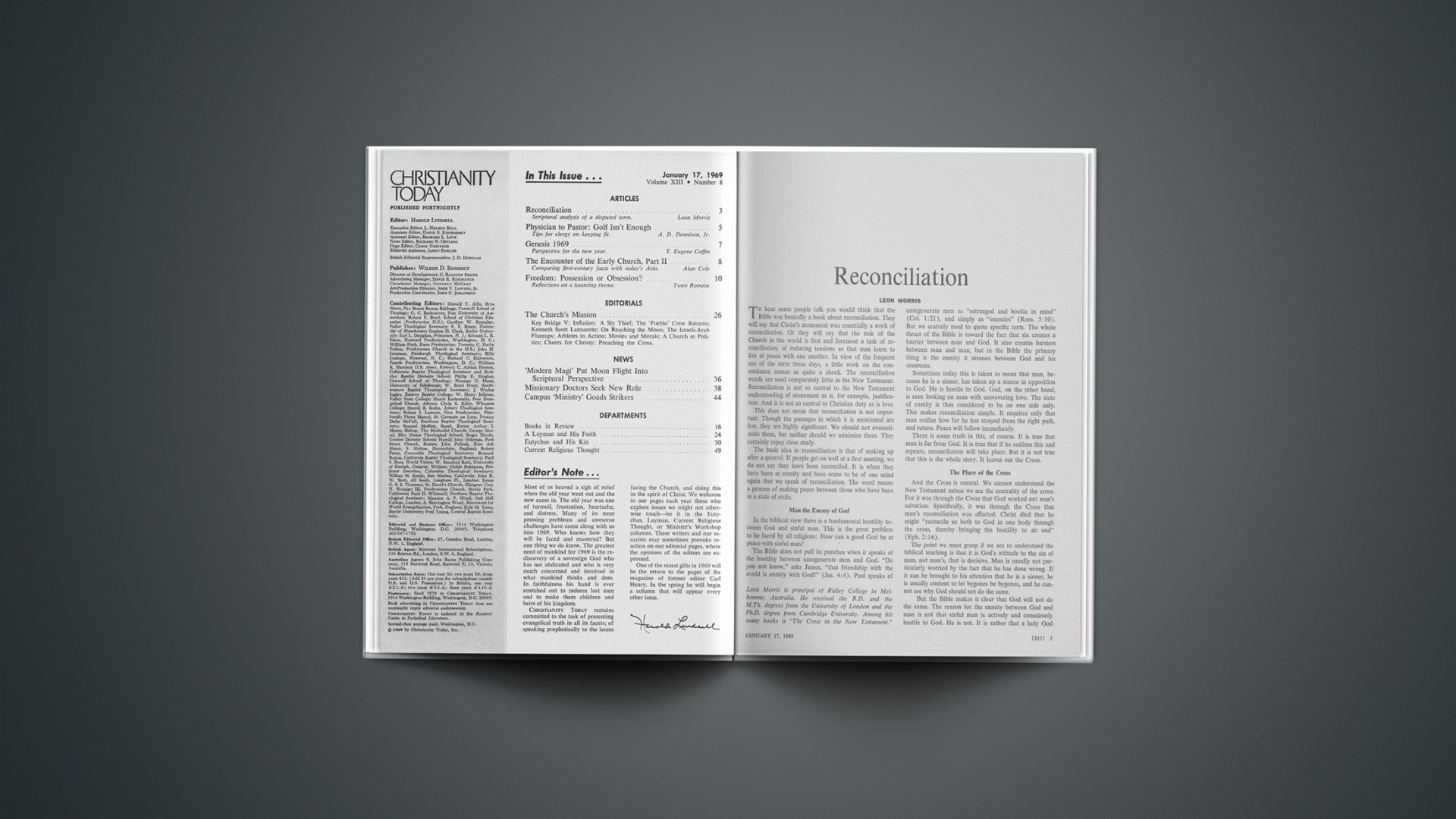 To hear some people talk you would think that the Bible was basically a book about reconciliation. They will say that Christ’s atonement was essentially a work of reconciliation. Or they will say that the task of the Church in the world is first and foremost a task of reconciliation, of reducing tensions so that men learn to live at peace with one another. In view of the frequent use of the term these days, a little work on the concordance comes as quite a shock. The reconciliation words are used comparately little in the New Testament. Reconciliation is not so central to the New Testament understanding of atonement as is, for example, justification. And it is not so central to Christian duty as is love.