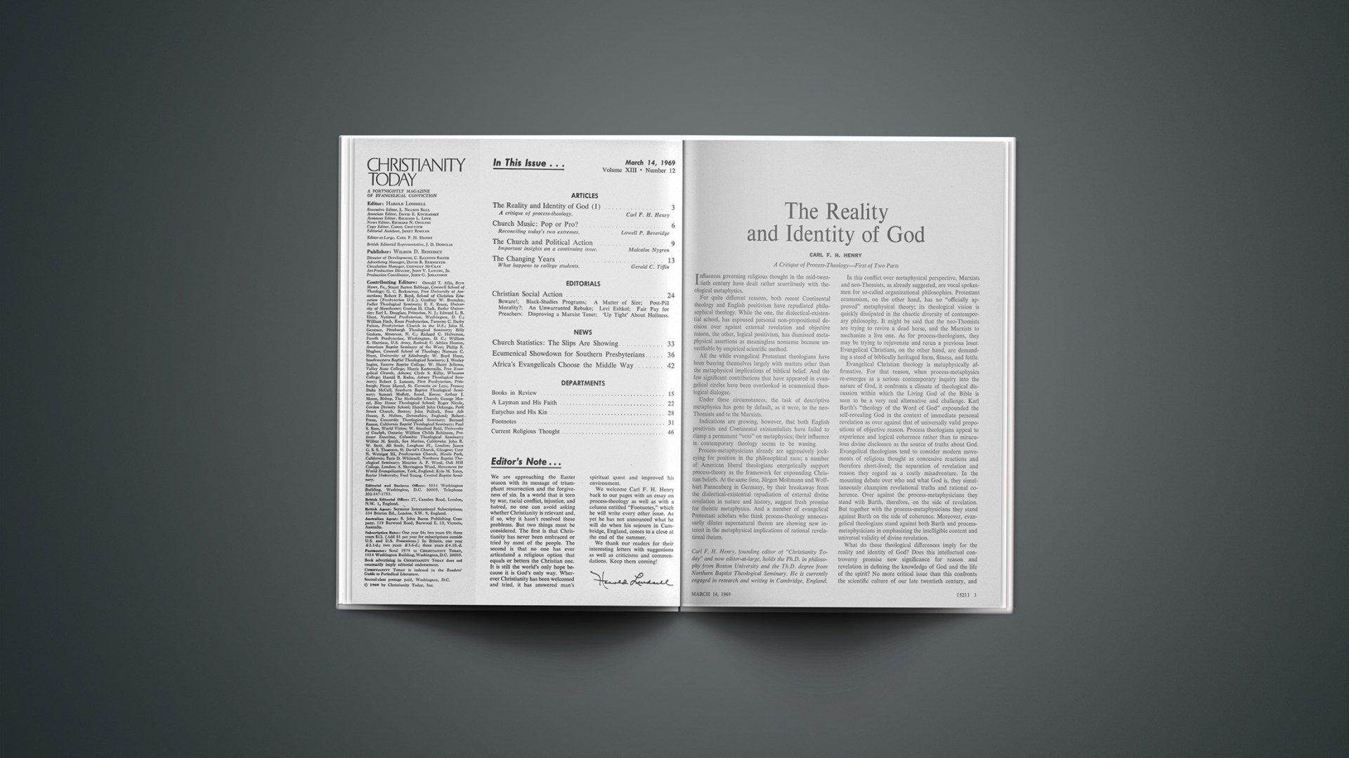 Evangelical Christian theology is metaphysically affirmative. For that reason, when process-metaphysics re-emerges as a serious contemporary inquiry into the nature of God, it confronts a climate of theological discussion within which the Living God of the Bible is seen to be a very real alternative and challenge. Karl Barth’s “theology of the Word of God” expounded the self-revealing God in the context of immediate personal revelation as over against that of universally valid propositions of objective reason. Process theologians appeal to experience and logical coherence rather than to miraculous divine disclosure as the source of truths about God. Evangelical theologians tend to consider modern movements of religious thought as concessive reactions and therefore short-lived; the separation of revelation and reason they regard as a costly misadventure. In the mounting debate over who and what God is, they simultaneously champion revelational truths and rational coherence. Over against the process-metaphysicians they stand with Barth, therefore, on the side of revelation. But together with the process-metaphysicians they stand against Barth on the side of coherence. Moreover, evangelical theologians stand against both Barth and process-metaphysicians in emphasizing the intelligible content and universal validity of divine revelation.