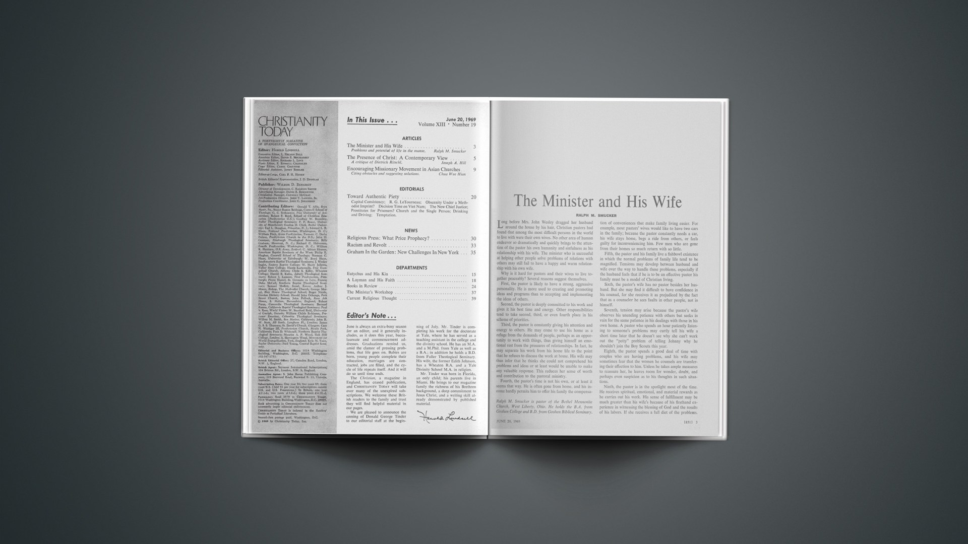 We are pleased to announce the coming of Donald George Tinder to our editorial staff at the beginning of July. Mr. Tinder is completing his work for the doctorate at Yale, where he has served as a teaching assistant in the college and the divinity school. He has an M.A. and a M.Phil. from Yale as well as a B.A.; in addition he holds a B.D. from Fuller Theological Seminary. His wife, the former Edith Johnson, has a Wheaton B.A. and a Yale Divinity School M.A. in religion.