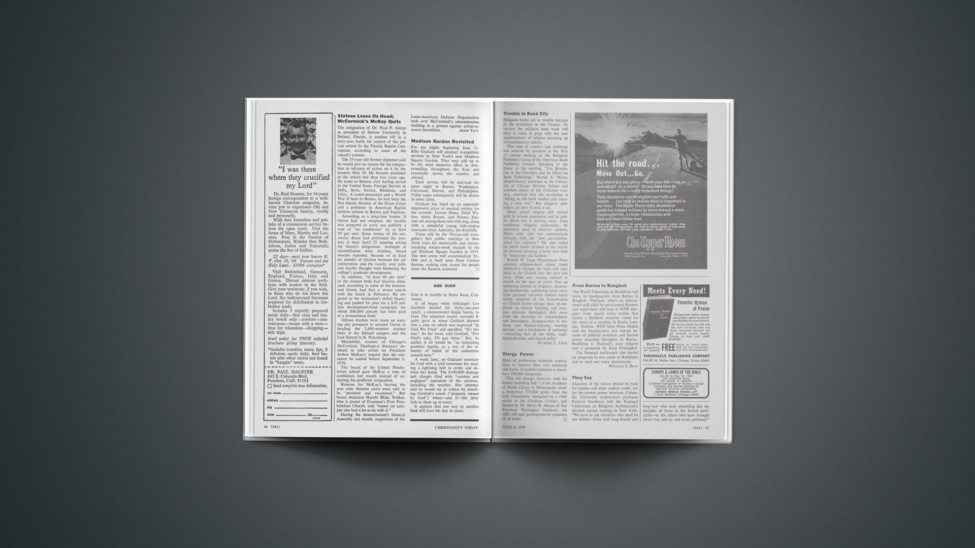 Bailey’s sermon in Pittsburgh’s spacious Civic Arena was especially significant because the theologically conservative and missionary-minded CMA has traditionally shied away from social concerns. “We evangelicals have tried to bury our heads in the sands of unconcern,” he said. “There have been social injustices that we have tolerated.”