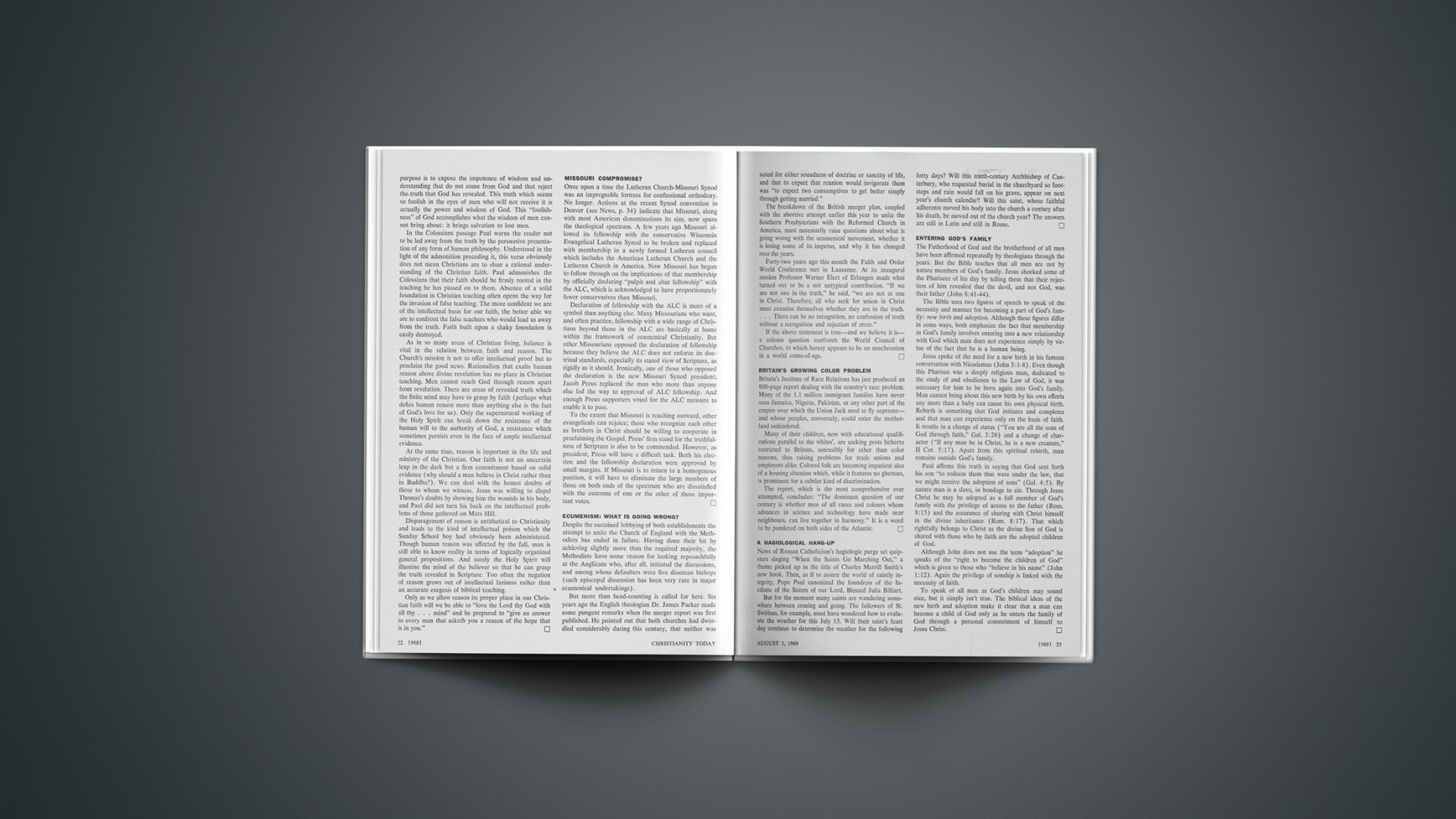 “Faith is believing something you know isn’t true.” Unfortunately this ludicrous definition of faith, attributed to a young lad in a Sunday school class, reflects the attitude of some Christians in rejecting the importance of a rational basis for the Christian faith. Becoming a Christian is more than intellectual comprehension of certain truths, and it does not require a thorough understanding of the whole of Christian doctrine. But it is important for a Christian to understand and communicate that reason is not antagonistic but complementary to his faith.