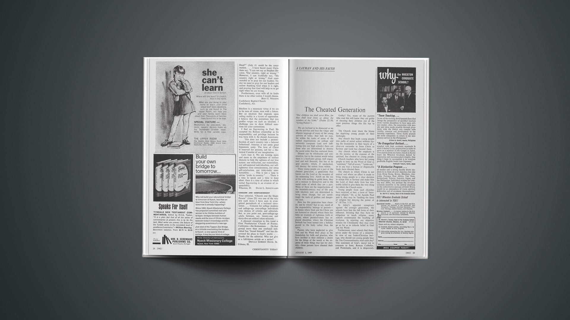 It is dismaying to witness the unenlightened and belligerent response of a presumably moderate Christian periodical to the problem of student disorder. Mr. Lindsell’s thesis seems to be that student unrest is the immediate result of the loss of a “theocentric life-and-world view” and that a return to the halcyon days of a uniformity of opinions would effectively end the problem.… But it is fallacious to view the problem in simple cause-and-effect terms. The restructuring of ideals in educational institutions which you imply took place quite recently ought more properly to be traced back to the Reformation, where the rejection of papal authority betrayed forever the hopes of a uniformity of opinions among Christian believers and laid the groundwork for the modern liberal education.