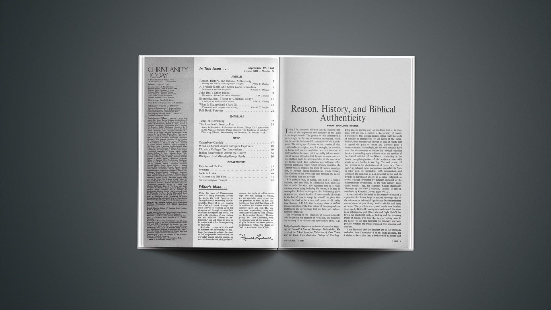 September brings us to the end of summer, the shortening of daytime, the return to school, the start of fall programs in the churches. As we watch season yield to season, as we anticipate the colorful glories of autumn, the tingle of colder mornings, and the coming of winter, we are reminded once again that the promises of God do not fail. As long as time shall last there will be seedtime and harvest, winter and summer, snow and sun. The seasons now approaching bring with them anniversaries we look forward to: Reformation Sunday, Thanksgiving, and then Christmas, with its remembrance of the greatest of all gifts. Man on the moon pales to insignificance when we think of God on earth—in Jesus Christ.