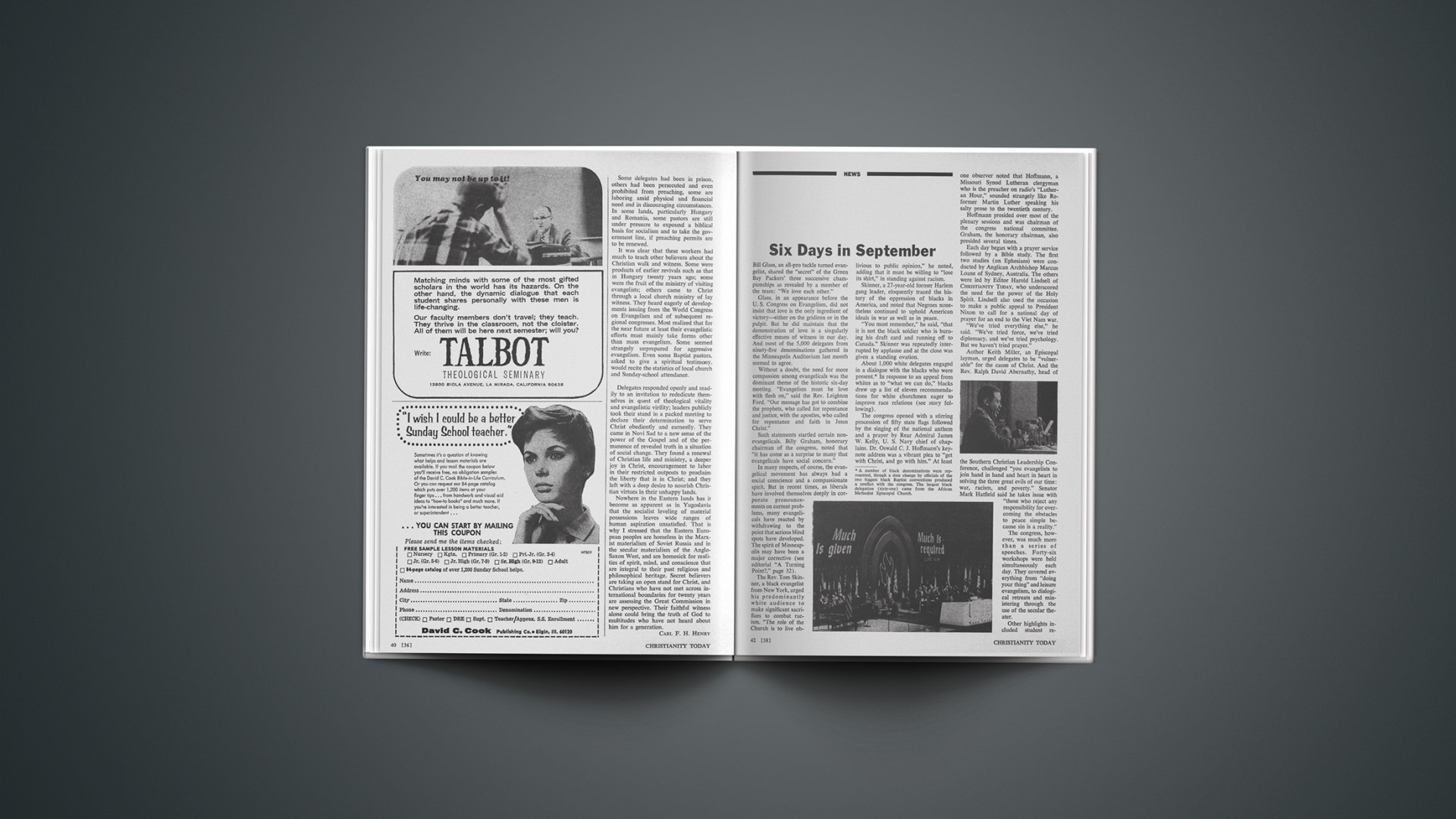 I witnessed a series of conferences for young people based on the theme “reconciliation,” not of men with God but of the Church with the world. Indeed, it was not so much reconciliation that was being taught as revolution—revolution against God, the “establishment,” and the present order of things. A representative of the black militants was brought in to tell the whites how evil they were. And a representative of the Students for a Democratic Society—an organization that is thought by many to be Communist-oriented—was brought in to preach revolution by violent action.