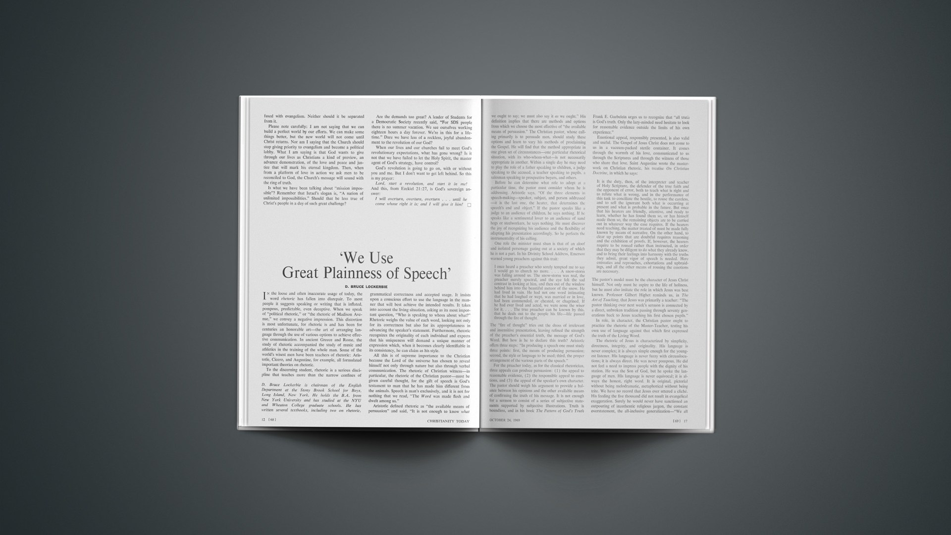 Surely the most successful of Christian preachers was one who knew and practiced his rhetoric. Saint Paul, a student of the classics and a rhetorician, expressed in forceful terms the obligation of every Christian spokesman: “Knowing therefore the terror of the Lord, we persuade men” (2 Cor. 5:11). But Paul knew the significance of an effective means of persuasion—an effective rhetoric—for he also wrote, “Seeing then that we have such hope, we use great plainness of speech” (2 Cor. 3:12). What better advice can one find?
