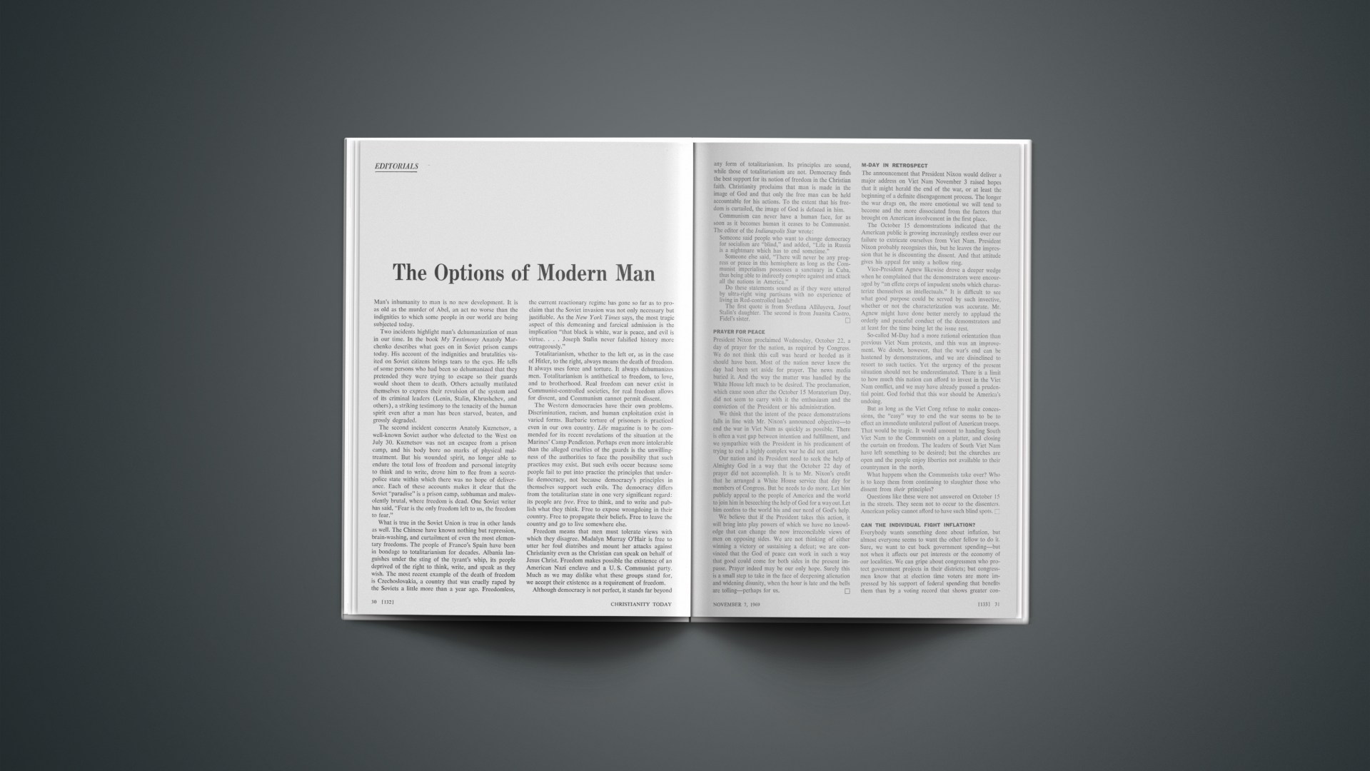 But as long as the Viet Cong refuse to make concessions, the “easy” way to end the war seems to be to effect an immediate unilateral pullout of American troops. That would be tragic. It would amount to handing South Viet Nam to the Communists on a platter, and closing the curtain on freedom. The leaders of South Viet Nam have left something to be desired; but the churches are open and the people enjoy liberties not available to their countrymen in the north.