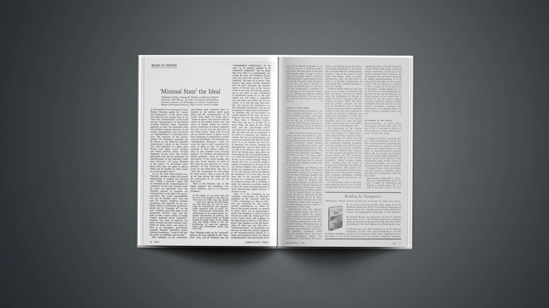 Theological Ethics, Volume II: Politics, by Helmut Thielicke (Fortress, 1969, 696 pp., $12.50), is reviewed, by Ellis Hollon, associate professor of philosophy of religion, Southeastern Baptist Theological Seminary, Wake Forest, North Carolina.