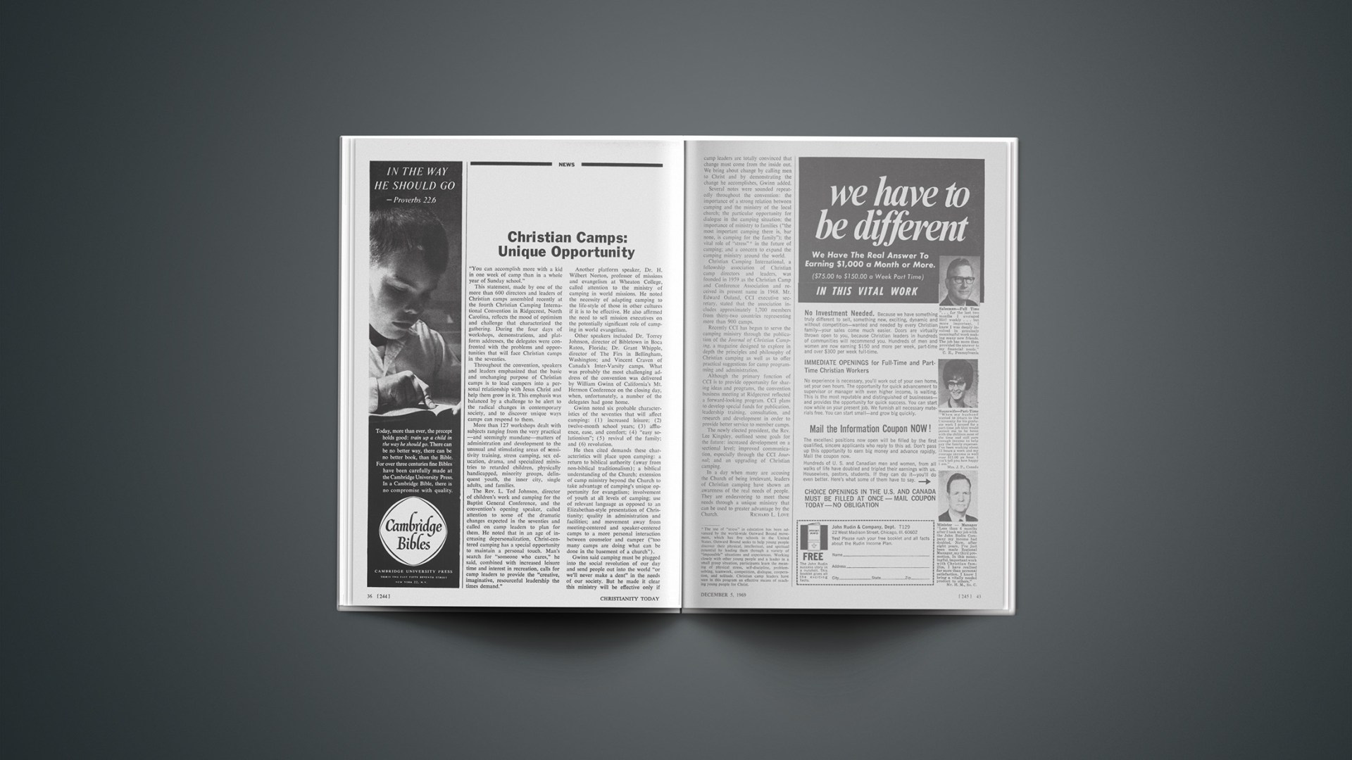 This statement, made by one of the more than 600 directors and leaders of Christian camps assembled recently at the fourth Christian Camping International Convention in Ridgecrest, North Carolina, reflects the mood of optimism and challenge that characterized the gathering. During the four days of workshops, demonstrations, and platform addresses, the delegates were confronted with the problems and opportunities that will face Christian camps in the seventies.