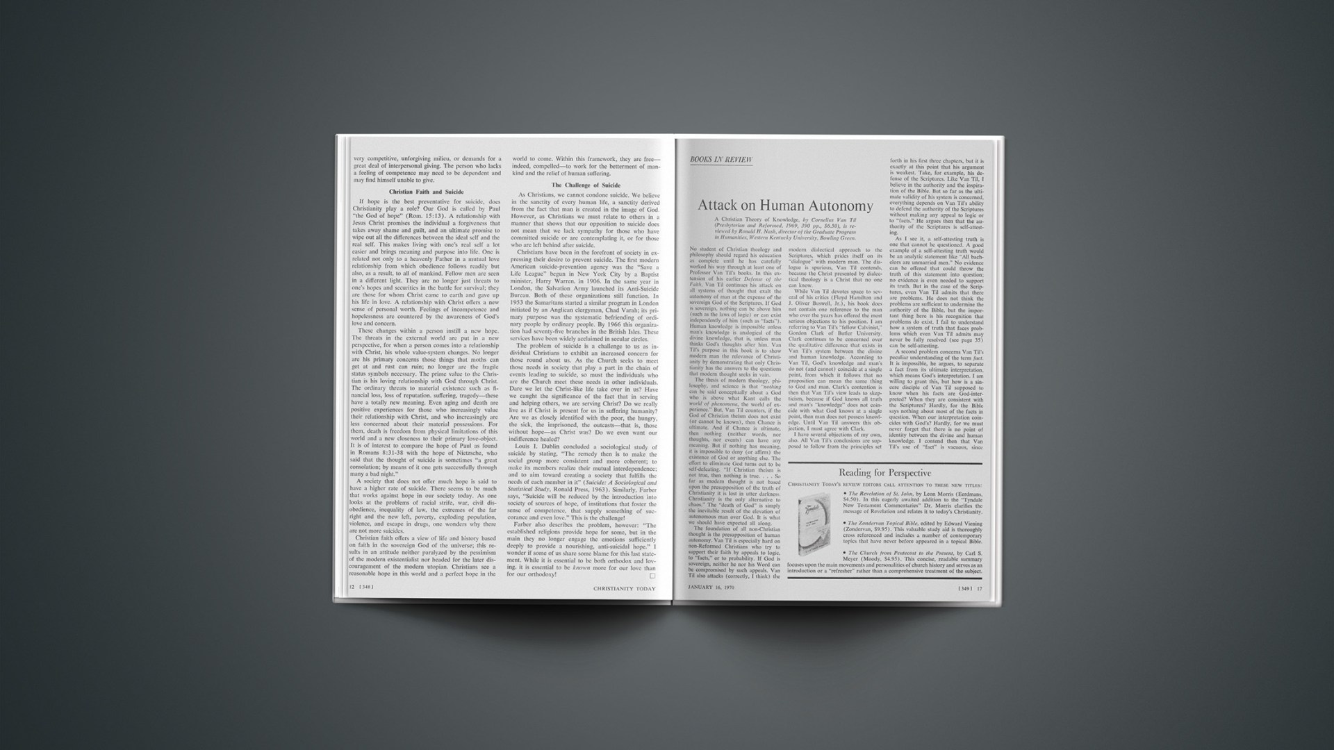 A Christian Theory of Knowledge, by Cornelius Van Til (Presbyterian and Reformed, 1969, 390 pp., $6.50), is reviewed by Ronald H. Nash, director of the Graduate Program in Humanities, Western Kentucky University, Bowling Green.