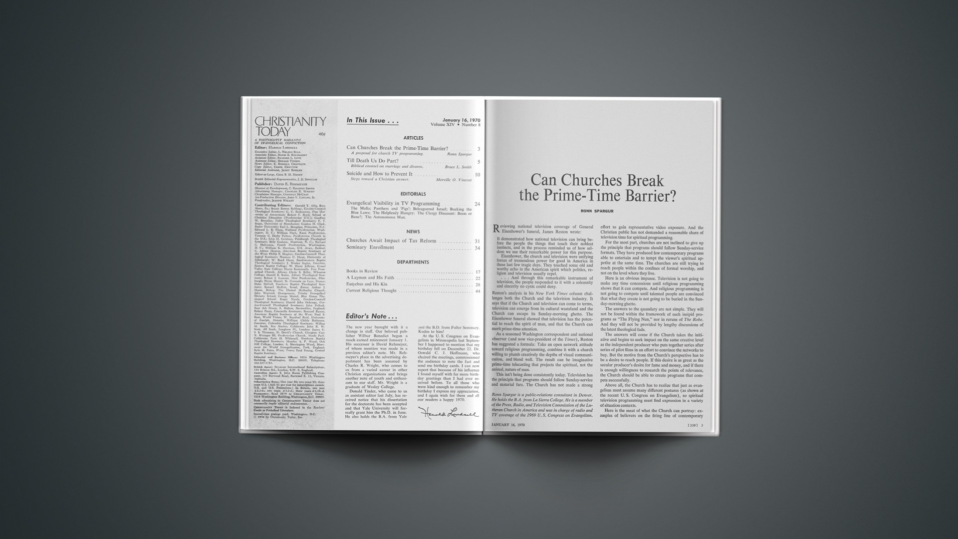 Here is an obvious impasse. Television is not going to make any time concessions until religious programming shows that it can compete. And religious programming is not going to compete until talented people are convinced that what they create is not going to be buried in the Sunday-morning ghetto.