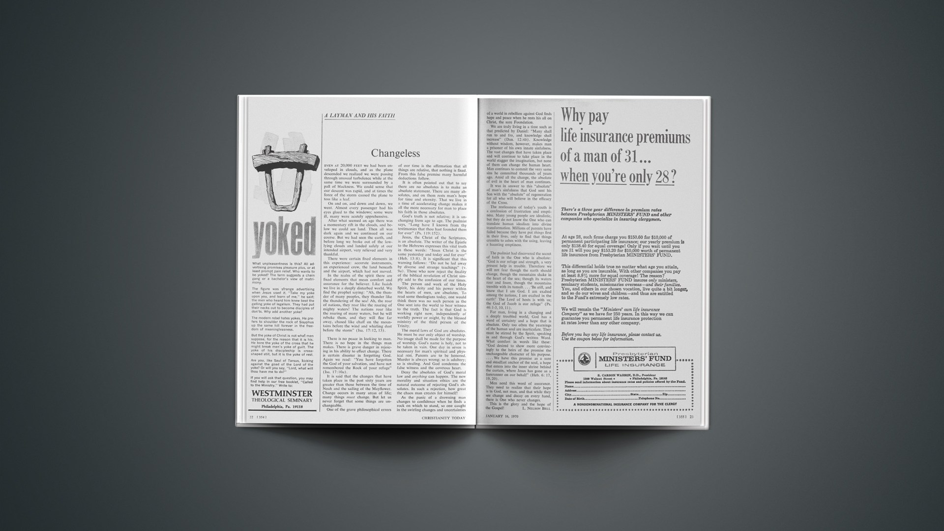 It is said that the changes that have taken place in the past sixty years are greater than those between the time of Noah and the sailing of the Mayflower. Change occurs in many areas of life; many things must change. But let us never forget that some things are unchangeable.