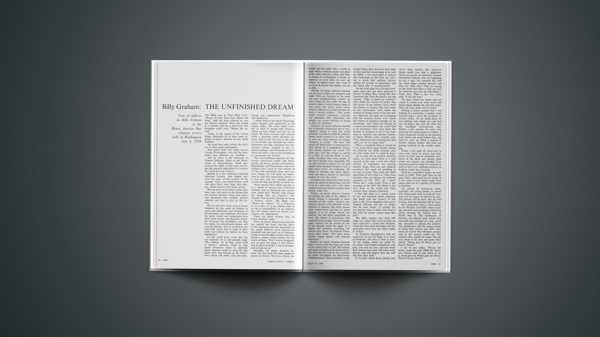 Text of address by Billy Graham at the Honor America Day religious service held in Washington July 4, 1970