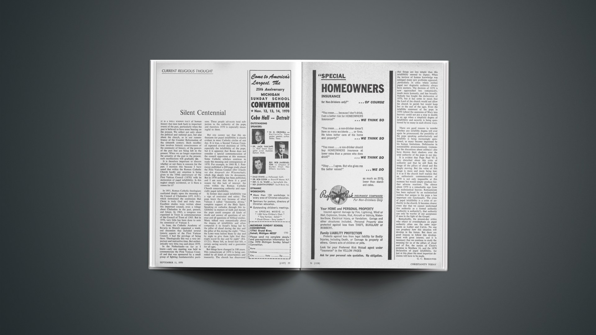It is therefore important to discern whether or not there is concern for the past. I mention this because I have noted that within the Roman Catholic Church hardly any attention is being given to the 100th anniversary of the First Vatican Council (1870) with its declaration of papal infallibility. Is this neglect simply accidental, or is there a reason for it?