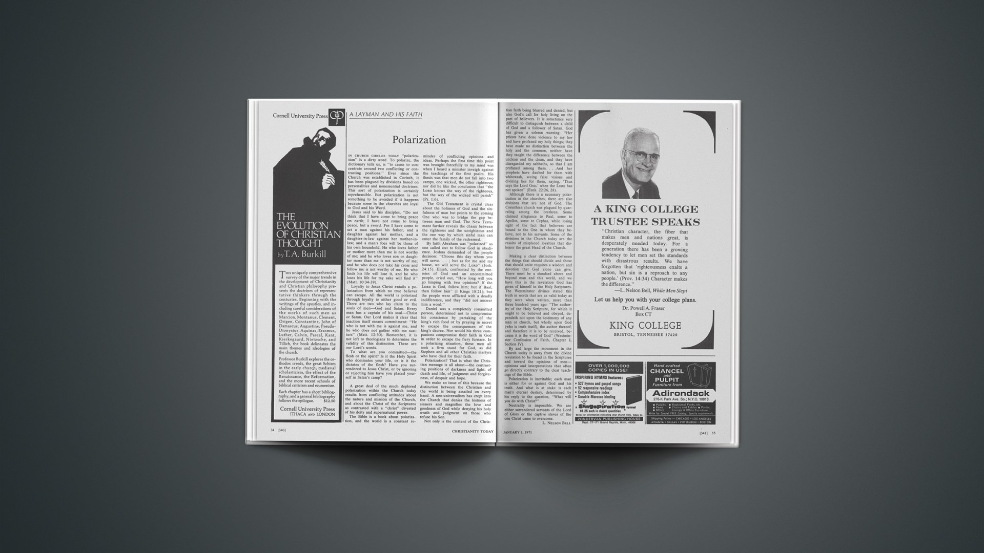In church circles today “polarization” is a dirty word. To polarize, the dictionary tells us, is “to cause to concentrate around two conflicting or contrasting positions.” Ever since the Church was established in Corinth, it has been plagued by divisions based on personalities and nonessential doctrines. This sort of polarization is certainly reprehensible. But polarization is not something to be avoided if it happens because some in the churches are loyal to God and his Word.