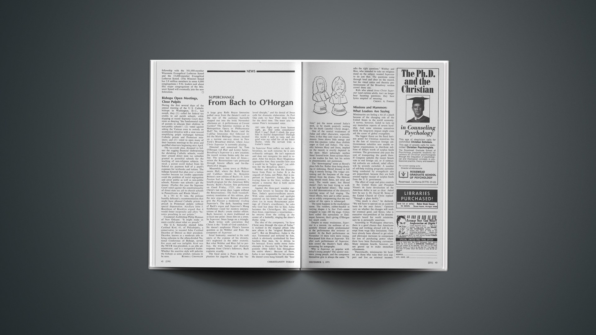 A large gray Rolls Royce limousine pulled away from the theater’s curb as the rest of the audience hurriedly stepped out into the brisk November afternoon air. A performance at Covent Garden? The Saturday matinee at the Metropolitan Opera or Philharmonic Hall? No, this Rolls Royce (and the Cadillac limousines that followed it) left the Mark Hellinger Theater, located on a narrow one-way street in New York’s Broadway district, where Jesus Christ Superstar is currently playing.