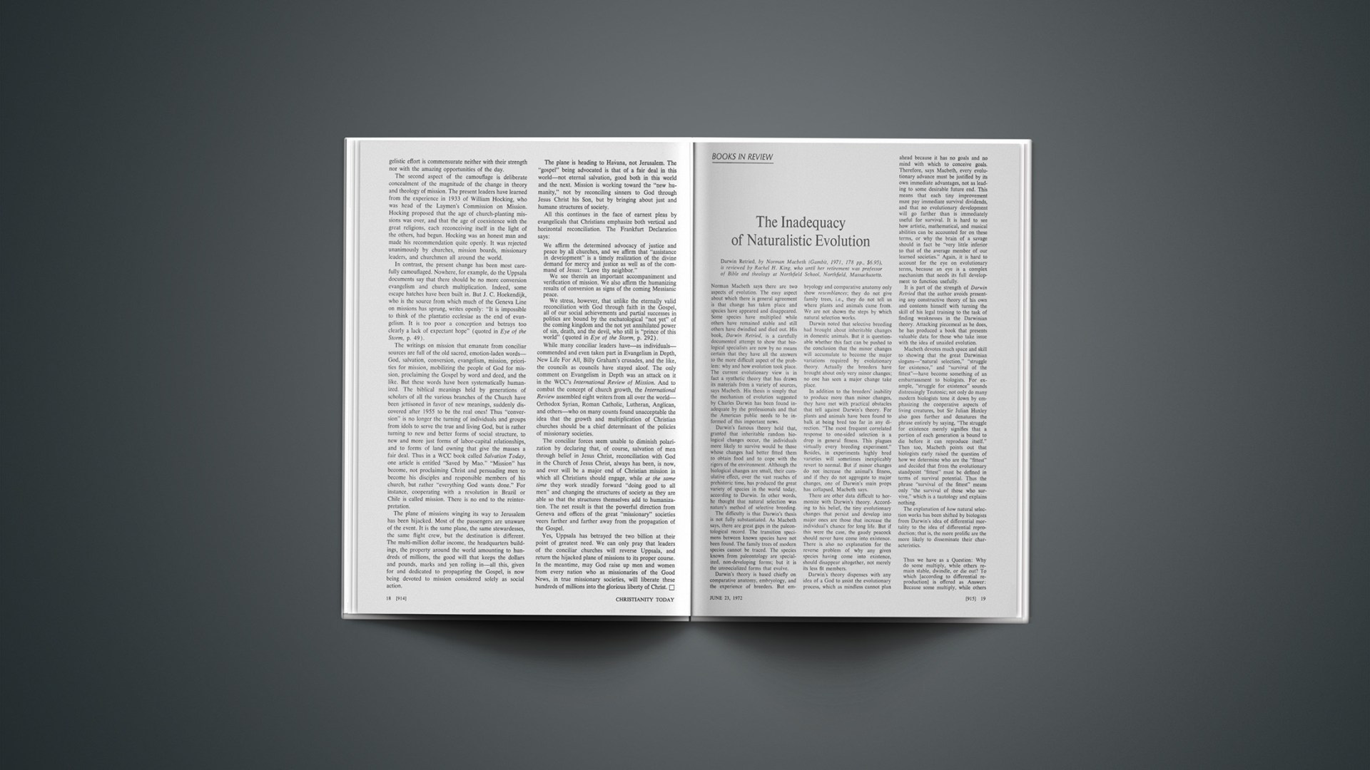 Darwin Retried, by Norman Macbeth (Gambit, 1971, 178 pp., $6.95), is reviewed by Rachel H. King, who until her retirement was professor of Bible and theology at Northfield School, Northfield, Massachusetts.