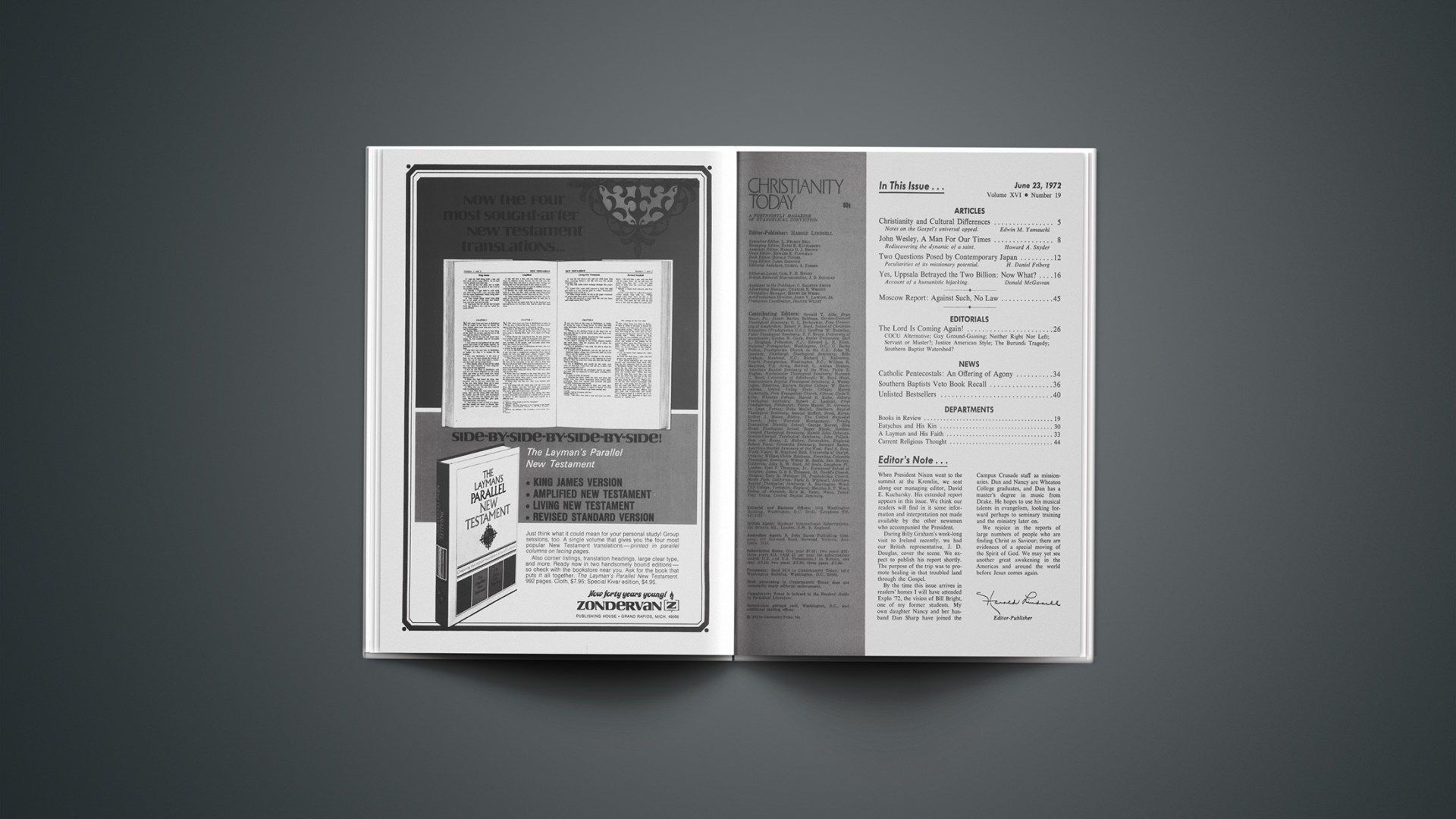 When President Nixon went to the summit at the Kremlin, we sent along our managing editor, David E. Kucharsky. His extended report appears in this issue. We think our readers will find in it some information and interpretation not made available by the other newsmen who accompanied the President.