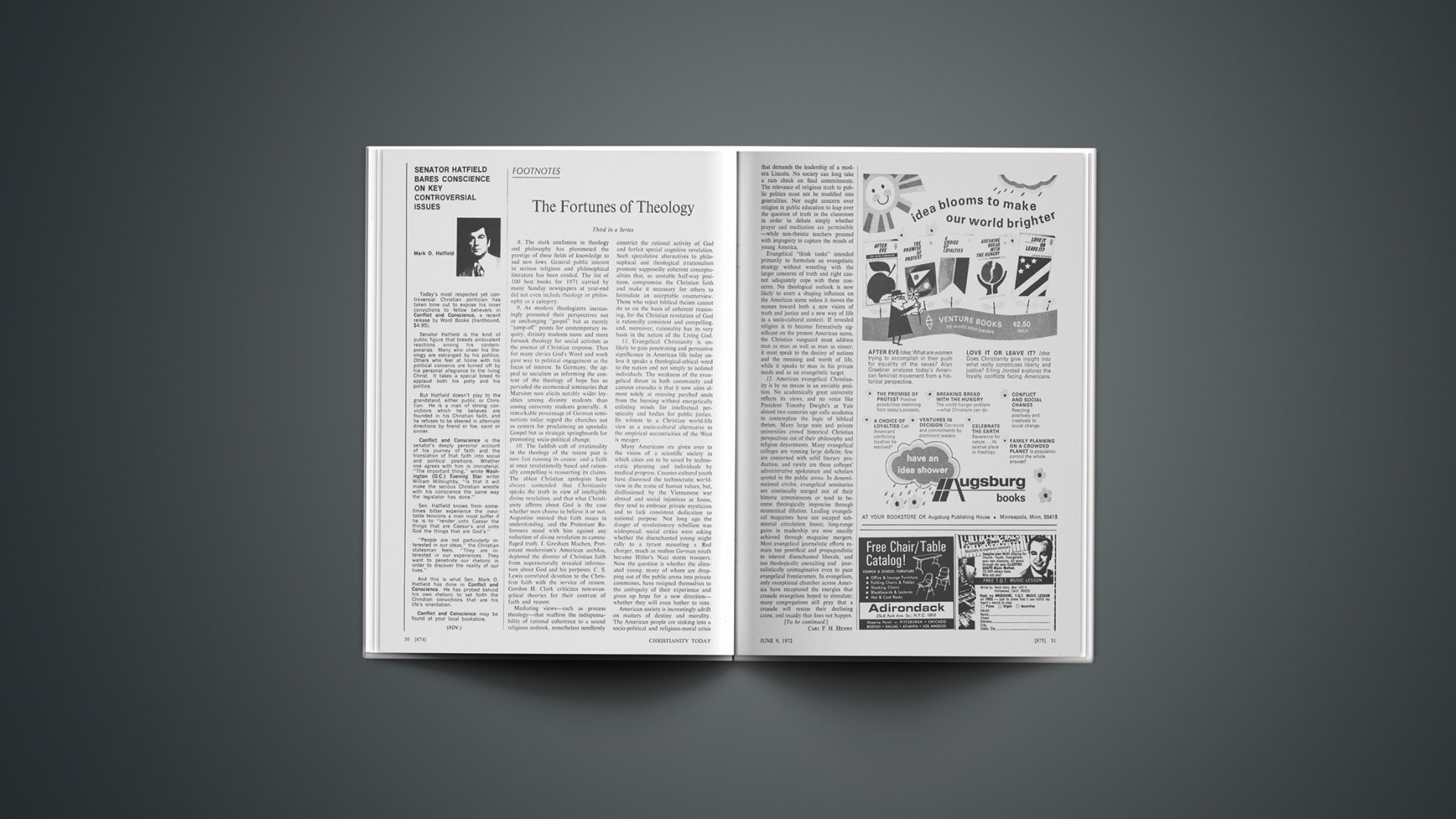 Many Americans are given over to the vision of a scientific society in which cities are to be saved by technocratic planning and individuals by medical progress. Counter-cultural youth have disowned the technocratic world-view in the name of human values, but, disillusioned by the Vietnamese war abroad and social injustices at home, they tend to embrace private mysticism and to lack consistent dedication to national purpose. Not long ago the danger of revolutionary rebellion was widespread; social critics were asking whether the disenchanted young might rally to a tyrant mounting a Red charger, much as restless German youth became Hitler’s Nazi storm troopers. Now the question is whether the alienated young, many of whom are dropping out of the public arena into private communes, have resigned themselves to the ambiguity of their experience and given up hope for a new direction—whether they will even bother to vote.