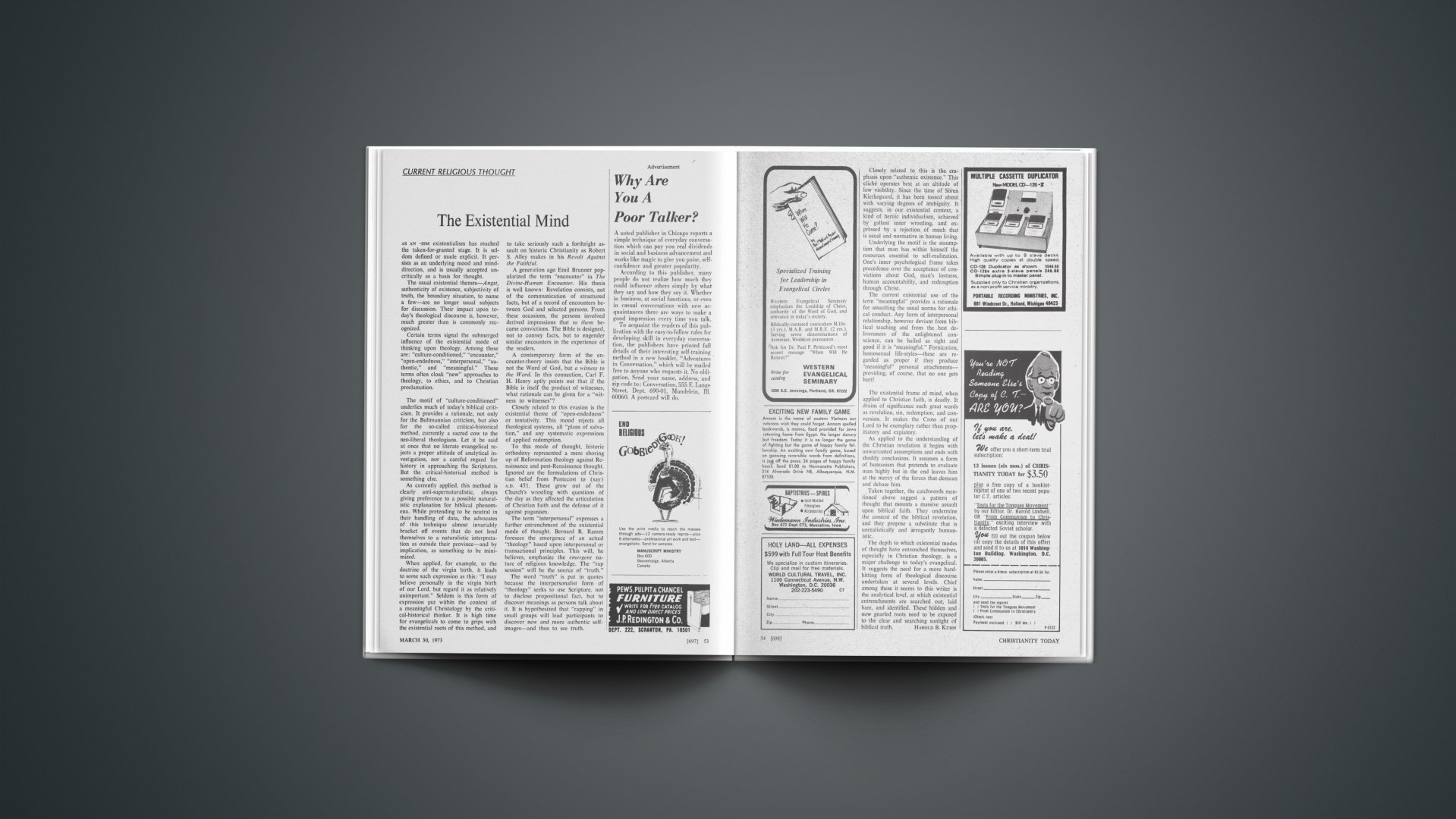 The depth to which existential modes of thought have entrenched themselves, especially in Christian theology, is a major challenge to today’s evangelical. It suggests the need for a more hard-hitting form of theological discourse undertaken at several levels. Chief among these it seems to this writer is the analytical level, at which existential entrenchments are searched out, laid bare, and identified. These hidden and now gnarled roots need to be exposed to the clear and searching sunlight of biblical truth.