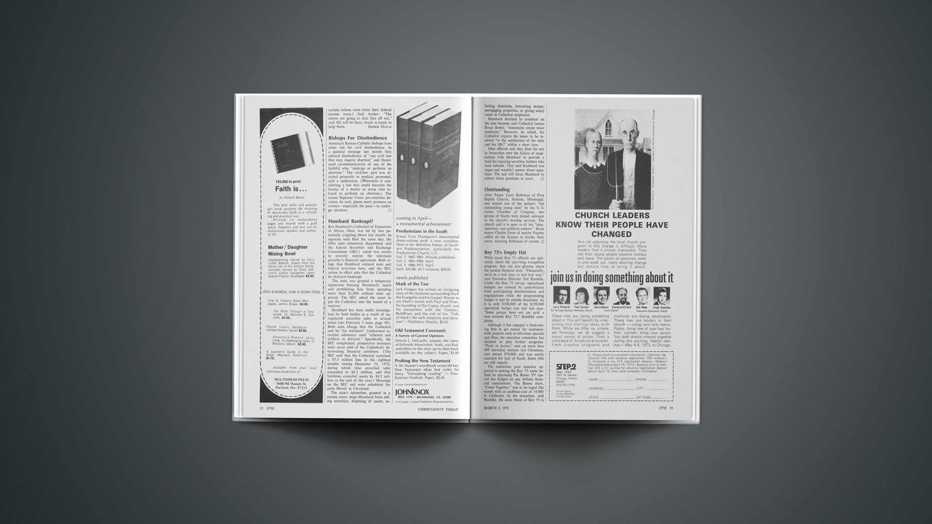 While many Key 73 officials are optimistic about the year-long evangelism program, they are also gloomy about the present financial state. “Financially, we’re in a bad way—a real bad way,” says Executive Director Ted Raedeke. Under the Key 73 set-up, operational budgets are covered by contributions from participating denominations and organizations while the programming budget is met by outside donations. As it is, only $100,000 of the $150,000 operations budget was met last year. “Some groups have not yet paid a cent towards Key 73,” Raedeke complains.