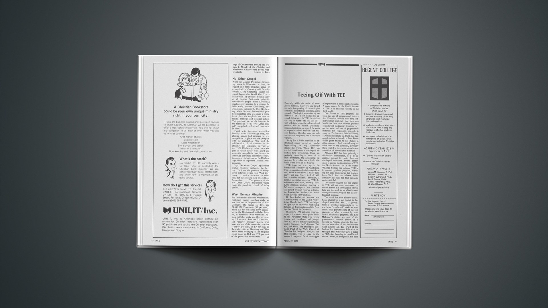 In January, 1971, extension programs began in five centers throughout India. By last November, there were twelve centers, and enrollment had jumped from 120 to 250. Similar organizations exist in Singapore, the Philippines, Taiwan, and Africa. The Theological Education Fund of the World Council of Churches has budgeted $245,000 for TEE projects. This is equal to the amount it designated for all other types of experiments in theological education. A major reason for the Fund’s interest in TEE is its financial viability in the third world.