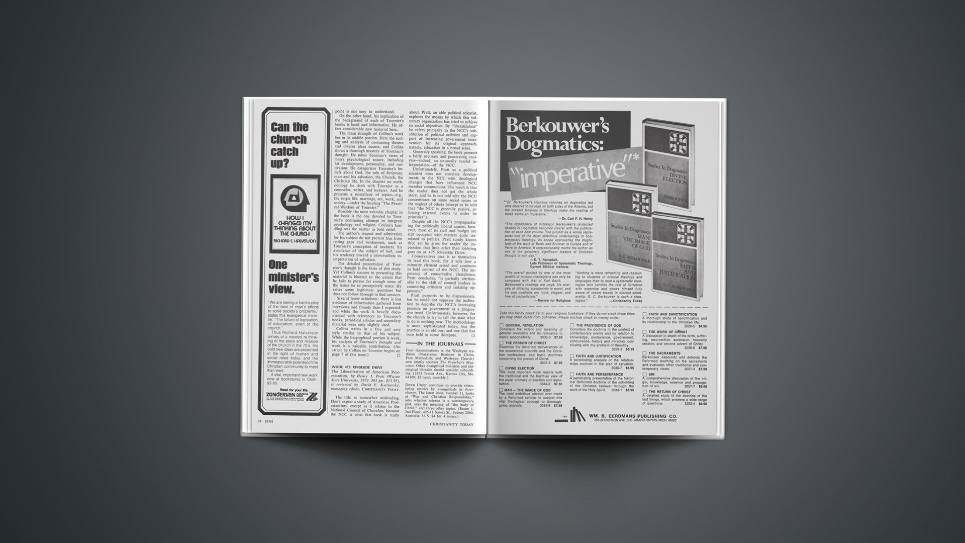 Will All the King’s Men, by James Olthuis et al. (Wedge [229 College St., Toronto 2B, Ontario], 255 pp., $3.95 pb). A unified group of seven essays by six men. The body of Christ, the “ecclesia,” exists not only for collective worship but also for all community functions, such as political, economic, juridical. Restricting the modern “church” to collective worship limits mutual support among Christians and prevents significant influence on the culture of our age.