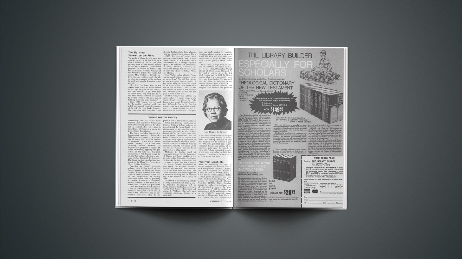 Problem or no, women and their concerns surfaced as never before at this year’s church conventions. In Pella, Iowa, at the annual General Synod of the Reformed Church in America, women made their legal debut as delegates in a denomination that had its origin with the early settlers. Their presence was made possible by constitutional amendments enacted at last year’s synod. The RCA, which has had a peak membership of nearly 400,000, began in 1628 with a group of Dutch Calvinists.