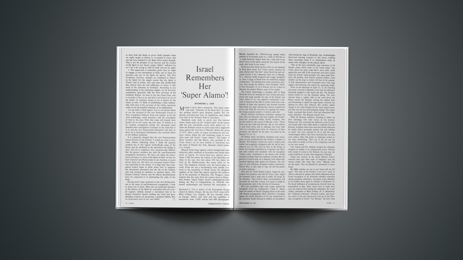 Hundreds come daily to prowl over this national shrine. Some snake up the “serpent path” on the eastern cliff, the only practicable access route before A.D. 73, when the Romans raised an earth ramp with a negotiable slope against the west face of Masada. Before the spring of 1971, when a cable car began ascending the east side, most visitors hiked the still remaining ramp to reach what some call Israel’s “super Alamo.” The names of Davy Crockett and Jim Bowie, who perished in the Texas Alamo, are no more familiar to Americans than the name of Eleazer ben Yair, Masada’s Zealot leader, is to Israelis.