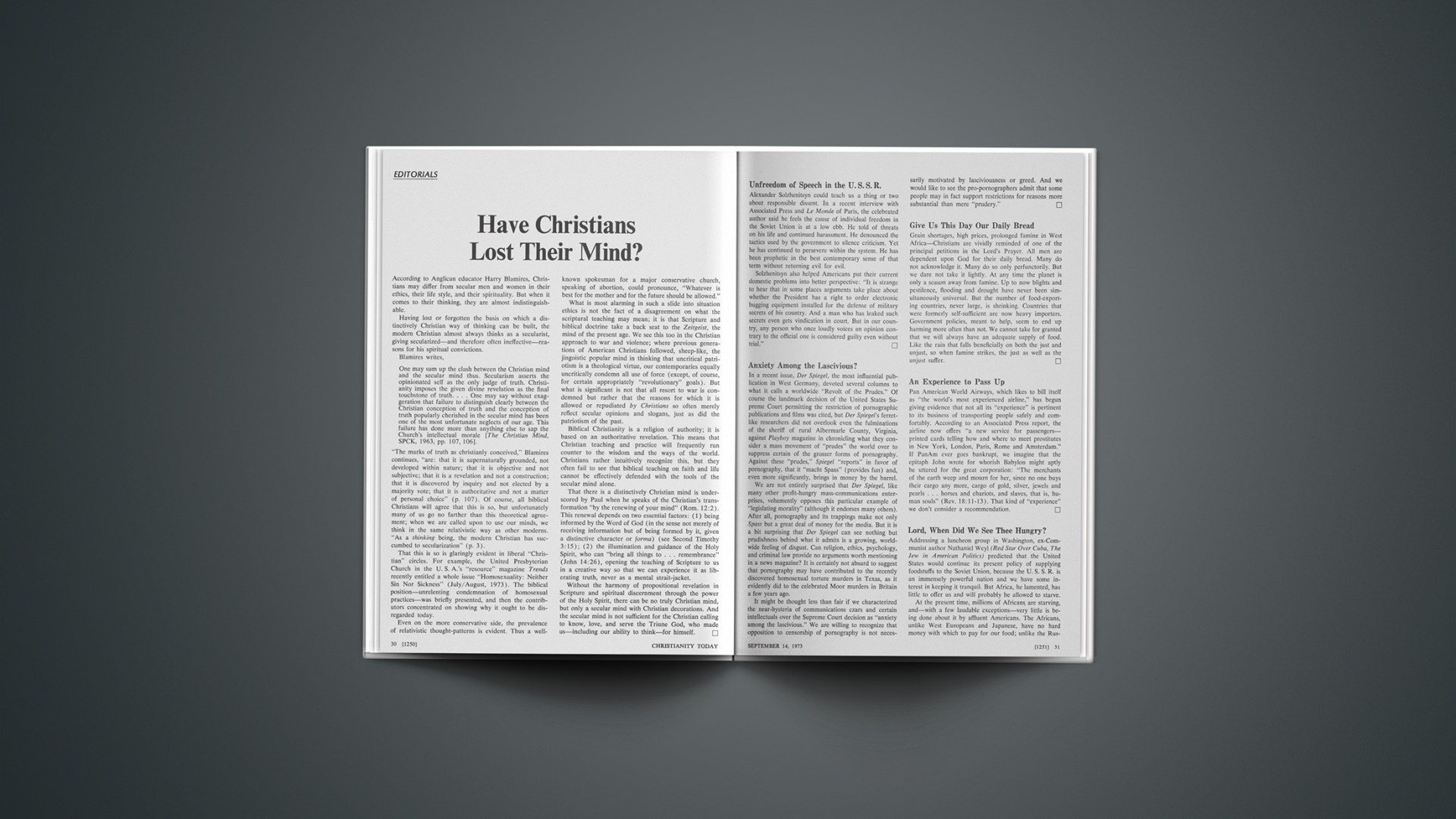 Pan American World Airways, which likes to bill itself as “the world’s most experienced airline,” has begun giving evidence that not all its “experience” is pertinent to its business of transporting people safely and comfortably. According to an Associated Press report, the airline now offers “a new service for passengers—printed cards telling how and where to meet prostitutes in New York, London, Paris, Rome and Amsterdam.” If PanAm ever goes bankrupt, we imagine that the epitaph John wrote for whorish Babylon might aptly be uttered for the great corporation: “The merchants of the earth weep and mourn for her, since no one buys their cargo any more, cargo of gold, silver, jewels and pearls … horses and chariots, and slaves, that is, human souls” (Rev. 18:11–13). That kind of “experience” we don’t consider a recommendation.
