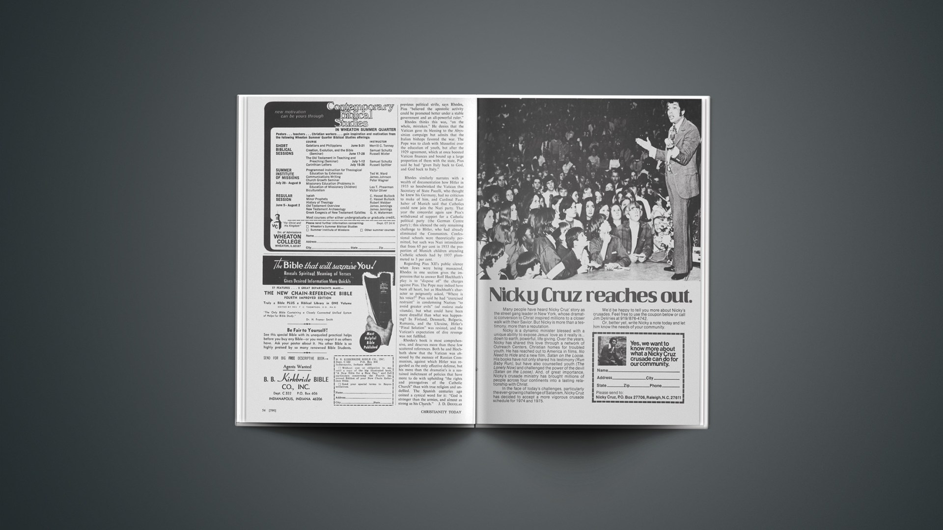 The 2,000-member First Presbyterian Church of Chattanooga, Tennessee, voted to leave the Southern Presbyterian fold and to join the new National Presbyterian Church. It led the denomination in mission giving, and Pastor Ben Haden has a nationwide broadcast.
