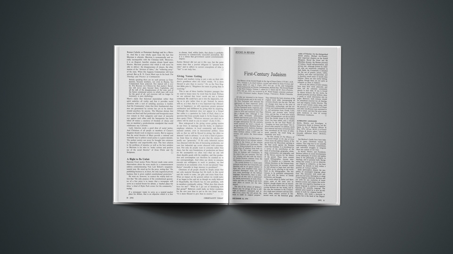 The History of the Jewish People in the Age of Jesus Christ (175 B.C.–A.D. 135), Volume 1, by Emil Schürer, revised and edited by Gaza Vermas and Fergus Millar (T. and T. Clark, 1973, 614 pp., £10), and Compendia Rerum Iudaicarum ad Novum Testamentum, Section One: The Jewish People in the First Century, Volume 1, edited by S. Safrai and M. Stern (Fortress, 1974, 560 pp., $25), are reviewed by W. Ward Gasque, associate professor of New Testament studies, Regent College, Vancouver, British Columbia.