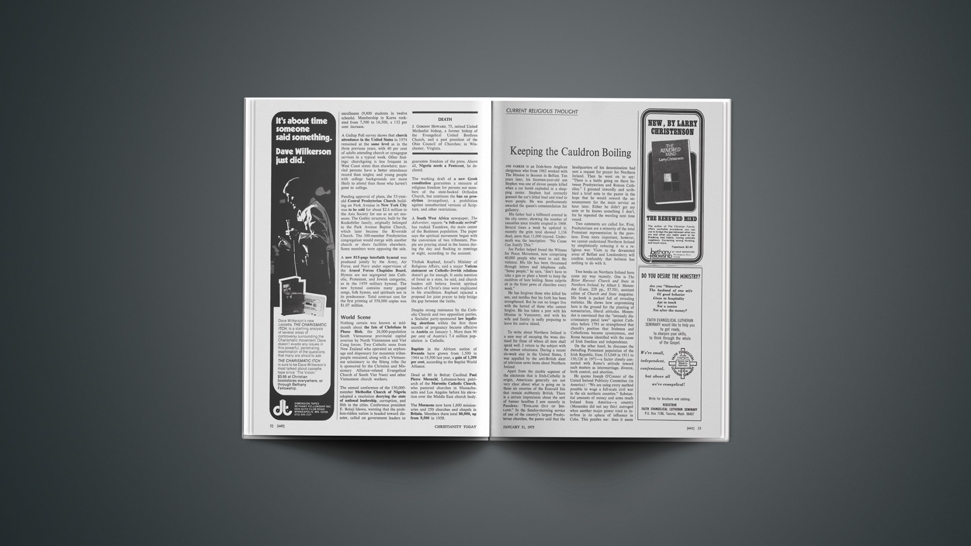 Apart from the sizable segment of the electorate that is Irish-Catholic in origin, Americans generally are not very clear about what is going on in those six counties of the Emerald Isle that remain stubbornly British. There is a certain imprecision about the sort of banner headline I saw recently in Pasadena: “ENGLAND OUT OF IRELAND.” In the Sunday-morning service of one of the country’s largest Presbyterian churches, the pastor said that the headquarters of his denomination had sent a request for prayer for Northern Ireland. Then he went on to say: “There is a battle going on there between Presbyterians and Roman Catholics.” I groaned inwardly and scribbled a brief note to the pastor in the hope that he would reword the announcement for the main service an hour later. Either he didn’t get my note or he knows something I don’t, for he repeated the wording next time round.