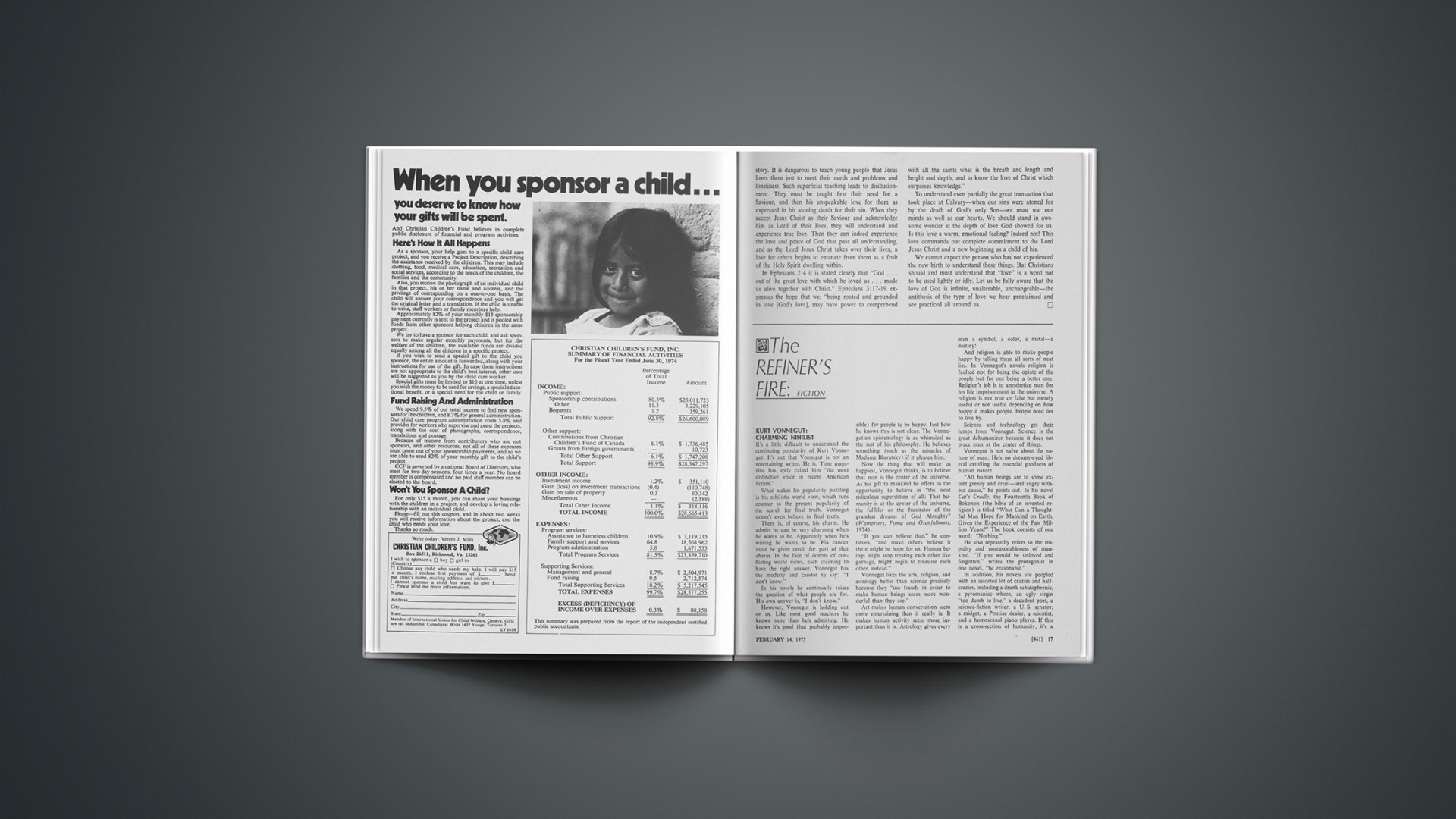 Vonnegut reports that a twelve-year-old after reading Breakfast of Champions wrote him a note saying “Please don’t commit suicide.” Let us join this sensitive youngster—in imploring Mr. Vonnegut not to commit suicide, but to look away from humanity, the object of his affection and despair, to Jesus, the Lord of humanity.