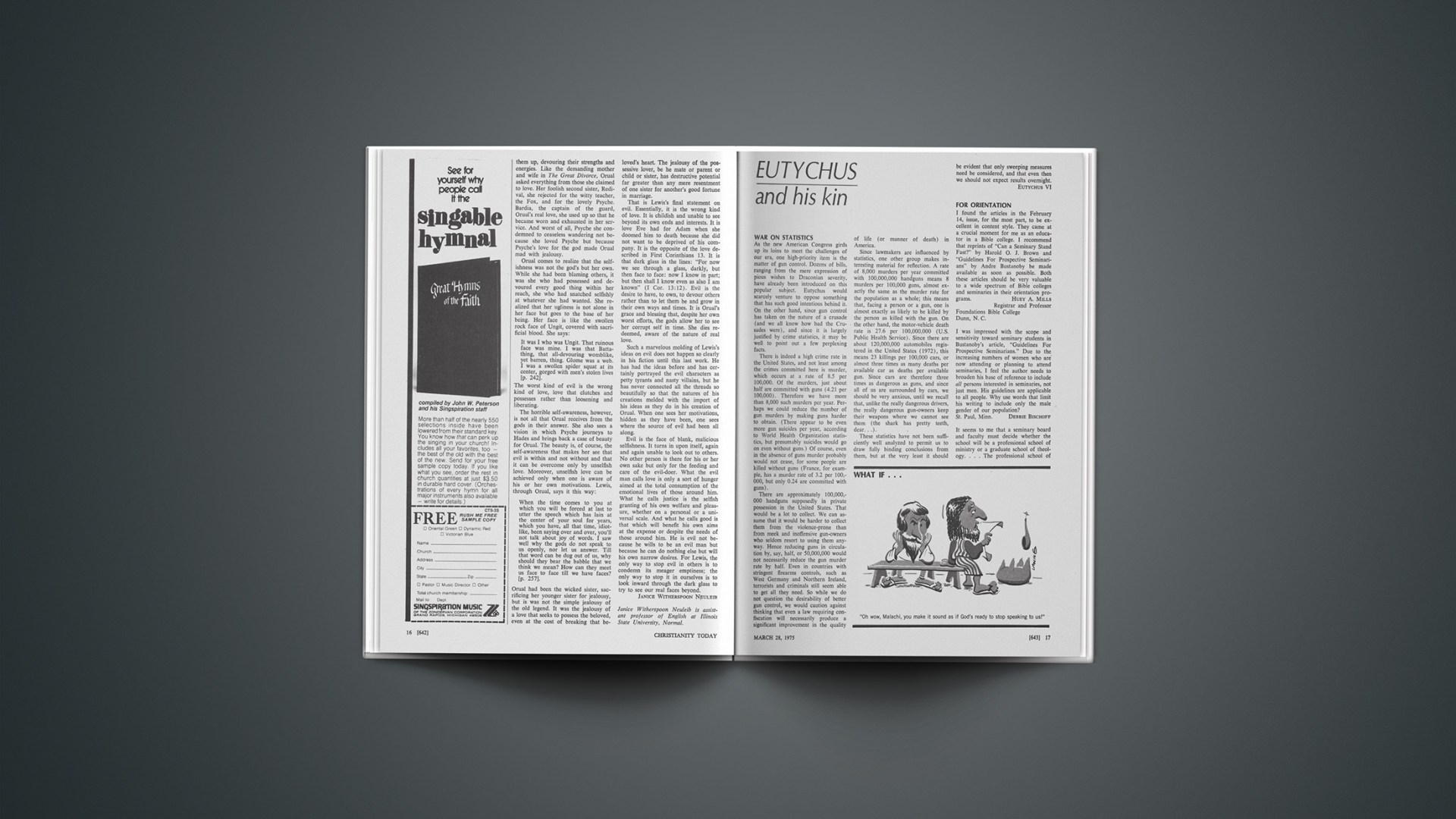 I found the articles in the February 14, issue, for the most part, to be excellent in content style. They came at a crucial moment for me as an educator in a Bible college. I recommend that reprints of “Can a Seminary Stand Fast?” by Harold O. J. Brown and “Guidelines For Prospective Seminarians” by Andre Bustanoby be made available as soon as possible. Both these articles should be very valuable to a wide spectrum of Bible colleges and seminaries in their orientation programs.