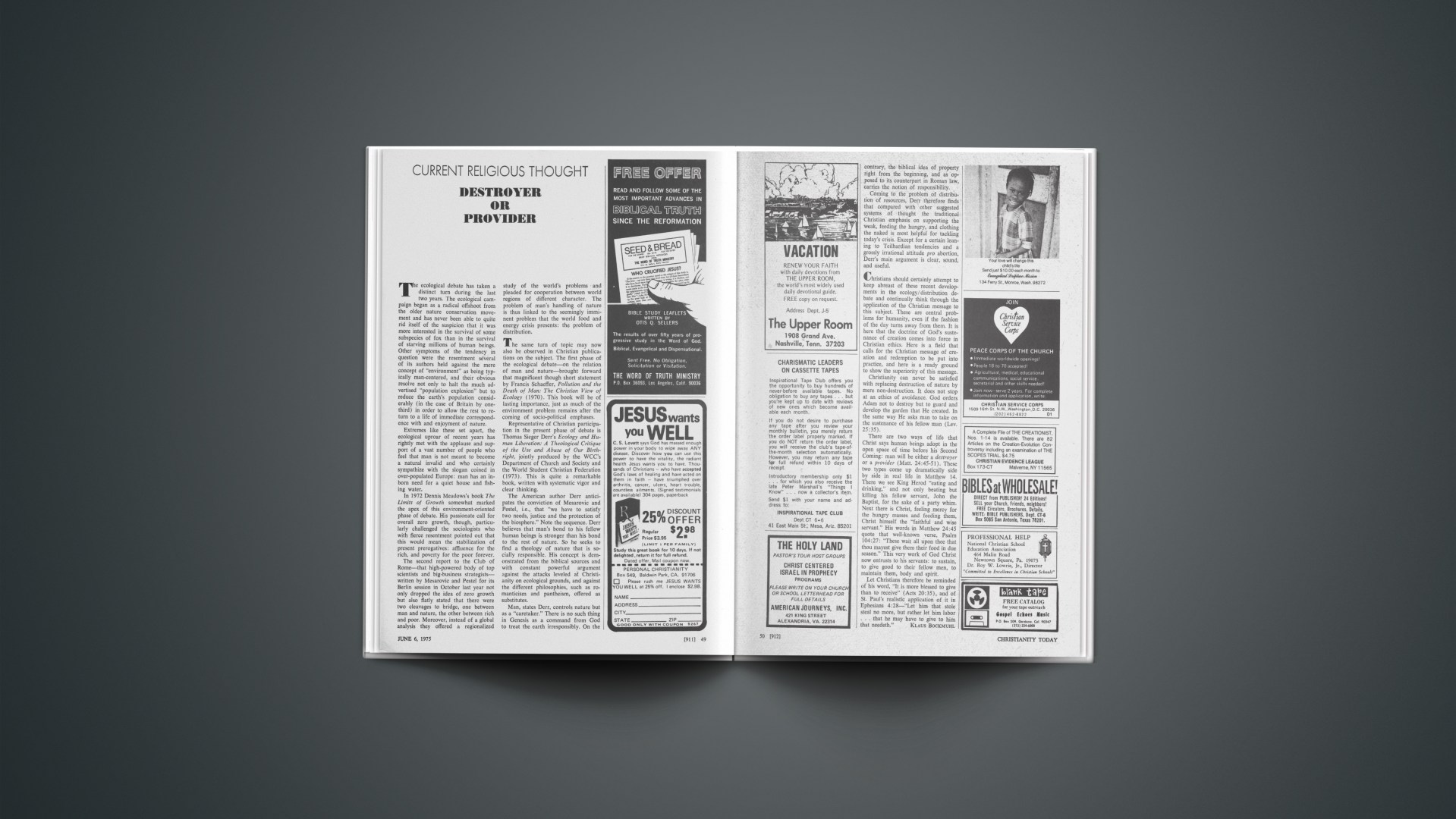 Christians should certainly attempt to keep abreast of these recent developments in the ecology/distribution debate and continually think through the application of the Christian message to this subject. These are central problems for humanity, even if the fashion of the day turns away from them. It is here that the doctrine of God’s sustenance of creation comes into force in Christian ethics. Here is a field that calls for the Christian message of creation and redemption to be put into practice, and here is a ready ground to show the superiority of this message.