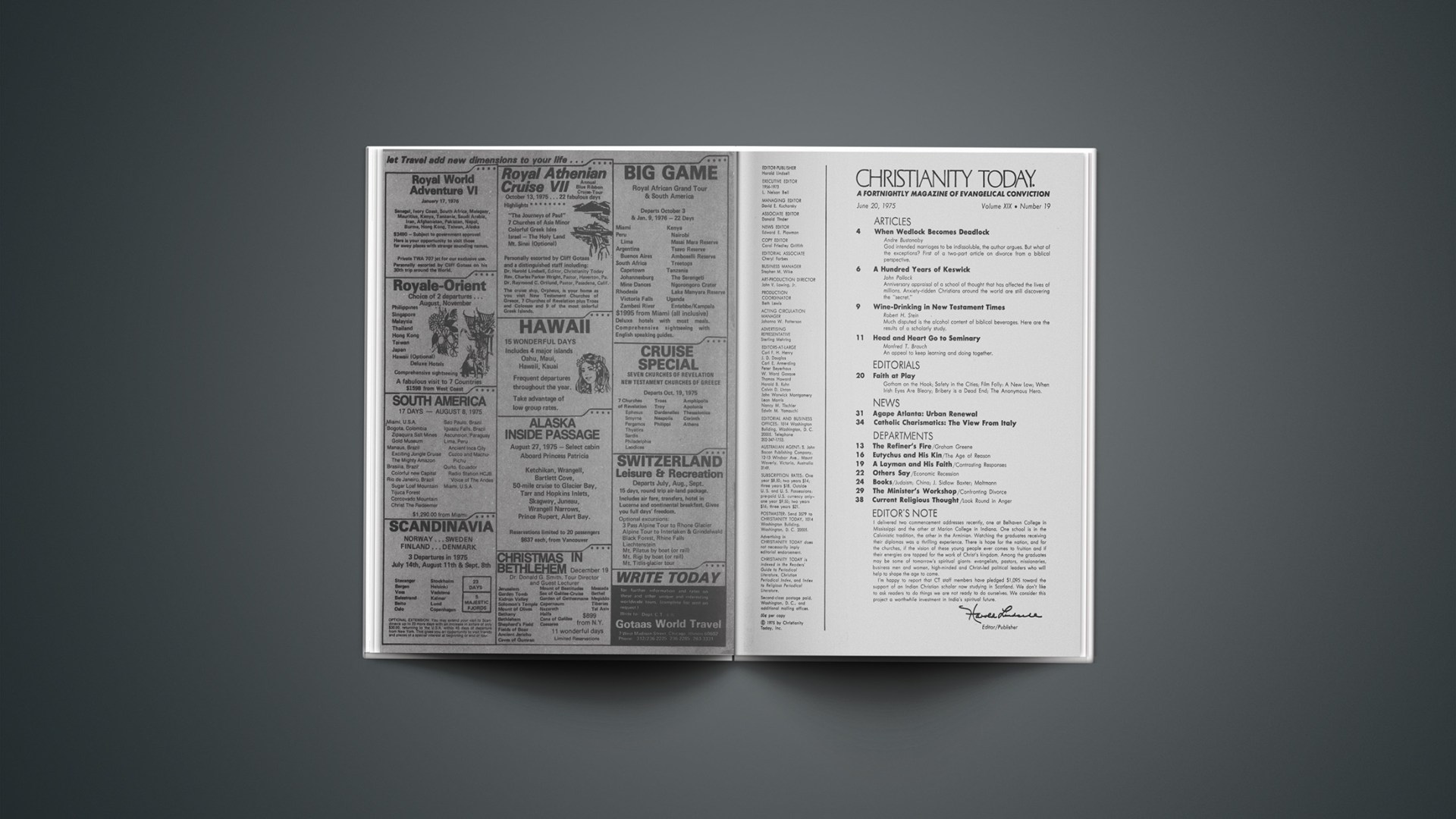 I delivered two commencement addresses recently, one at Belhaven College in Mississippi and the other at Marion College in Indiana. One school is in the Calvinistic tradition, the other in the Arminian. Watching the graduates receiving their diplomas was a thrilling experience. There is hope for the nation, and for the churches, if the vision of these young people ever comes to fruition and if their energies are tapped for the work of Christ’s kingdom. Among the graduates may be some of tomorrow’s spiritual giants: evangelists, pastors, missionaries, business men and women, high-minded and Christ-led political leaders who will help to shape the age to come.