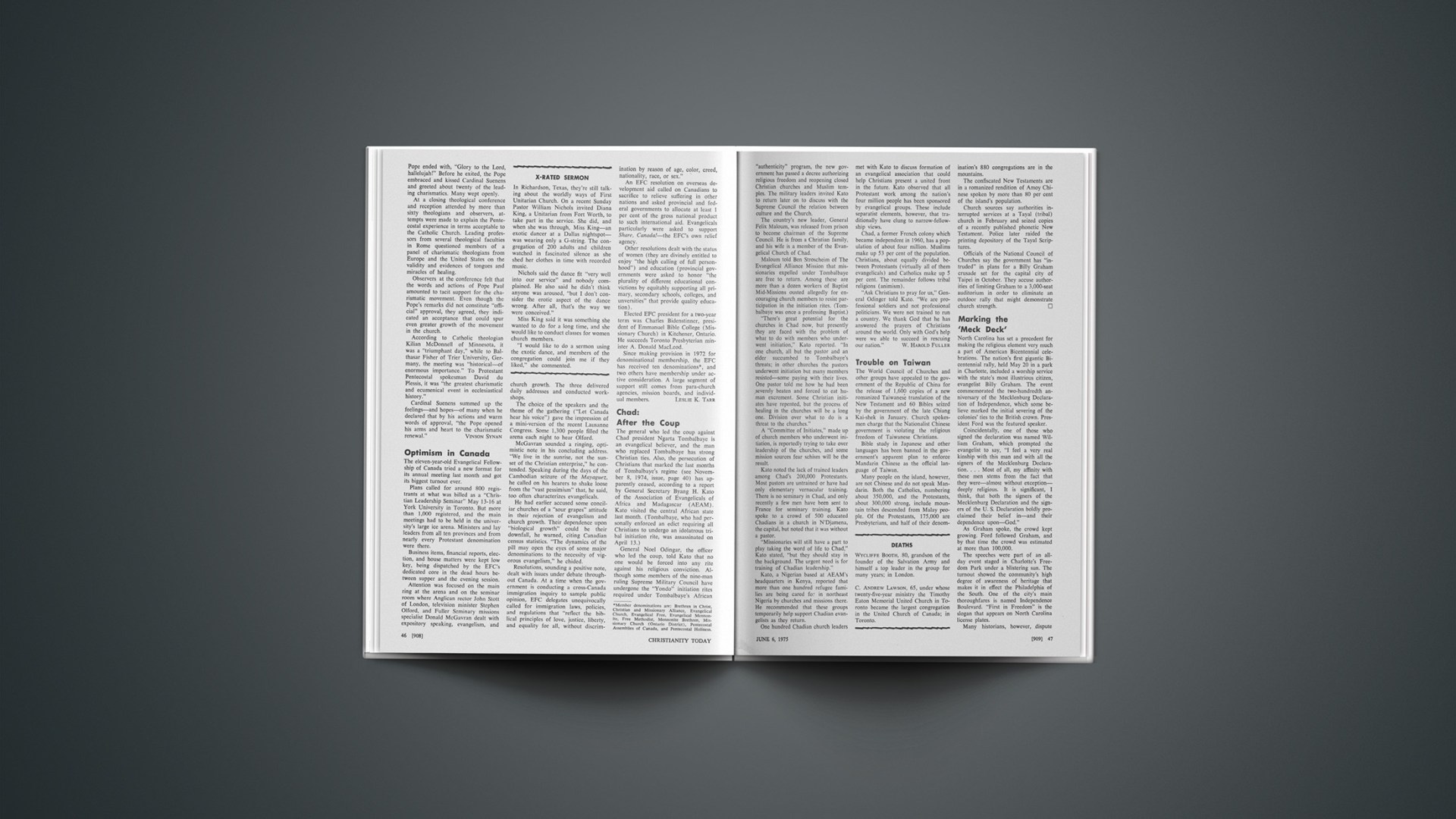 CMA president Nathan Bailey told a press conference held in connection with his denomination’s annual General Council in Cleveland that a drive has begun to raise $500,000 to assist in the resettlement of the refugees and in the relocation of more than 100 of its missionaries who had been serving in Viet Nam. Churches and individual members are being asked to locate homes for the refugees and help them find jobs and learn English. A number of other church bodies and para-church groups are also offering extensive aid to refugees.