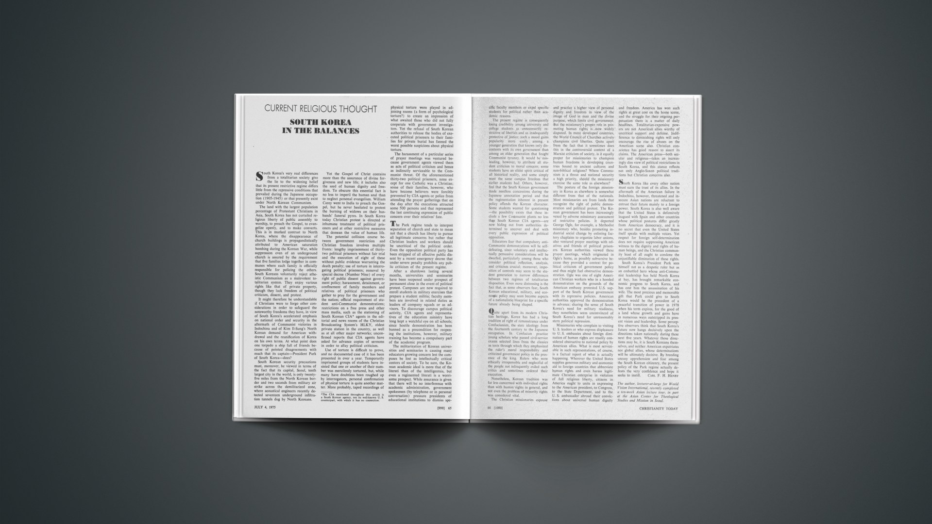 It might therefore be understandable if Christians were to forgo other considerations in order to safeguard the noteworthy freedoms they have, in view of South Korea’s accelerated emphasis on national order and security in the aftermath of Communist victories in Indochina and of Kim Il-Sung’s North Korean demand for American withdrawal and the reunification of Korea on his own terms. At what point does one torpedo a ship full of friends because of pointed disagreements with much that its captain—President Park of South Korea—does?