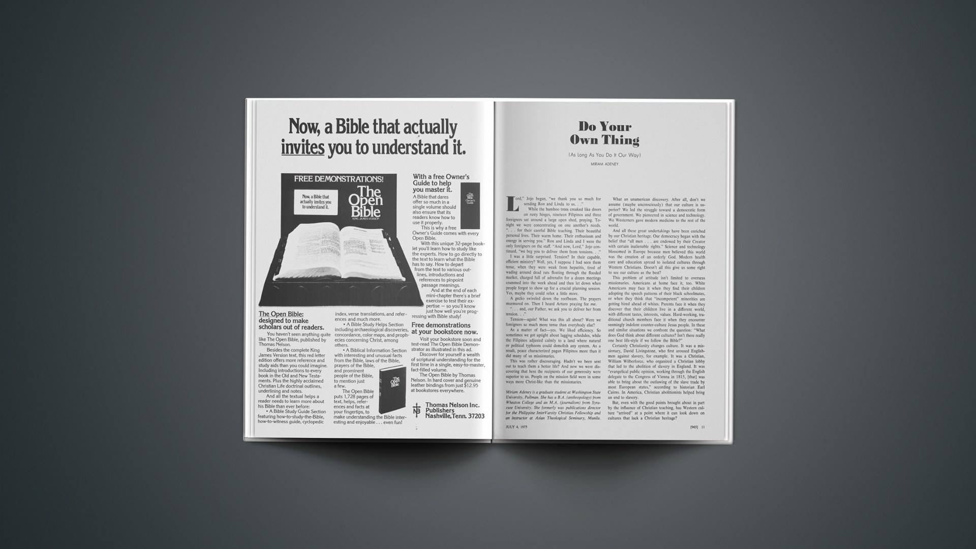 Foreign students find Americans remarkably ignorant of what’s happening in the rest of the world. But Christians should be different. Our missionary concern should have stimulated us to seek not emotional highs but solid contextual information about how our brothers live. For Christians, currency devaluations, revolutions, earthquakes, and talks with Peking should mean something special because of the way these things will affect the brothers we have learned enough about to empathize with. And, as charity begins at home, when did you last give an informed thought to Christ’s Body among the American Indians?