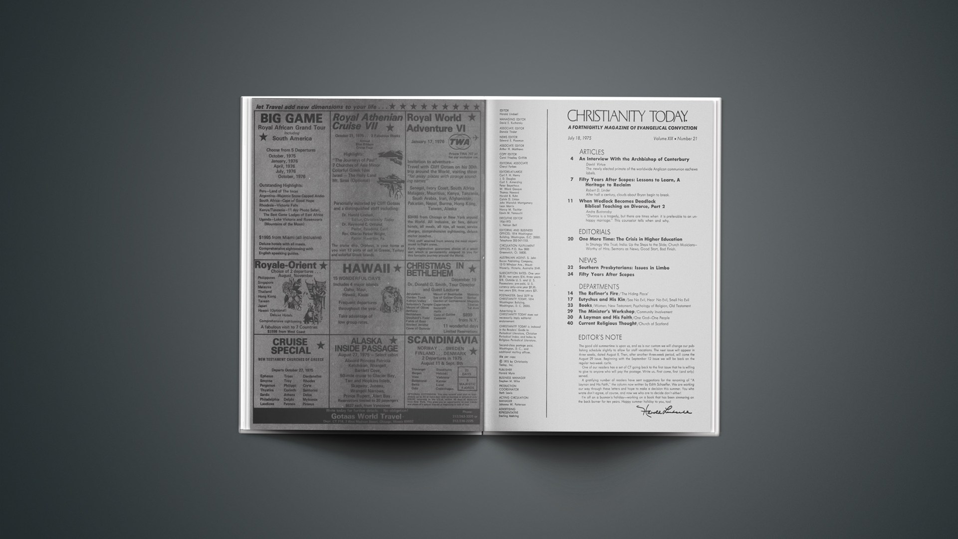 The good old summertime is upon us, and as is our custom we will change our publishing schedule slightly to allow for staff vacations. The next issue will appear in three weeks, dated August 8. Then, after another three-week period, will come the August 29 issue. Beginning with the September 12 issue we will be back on the regular two-week cycle.