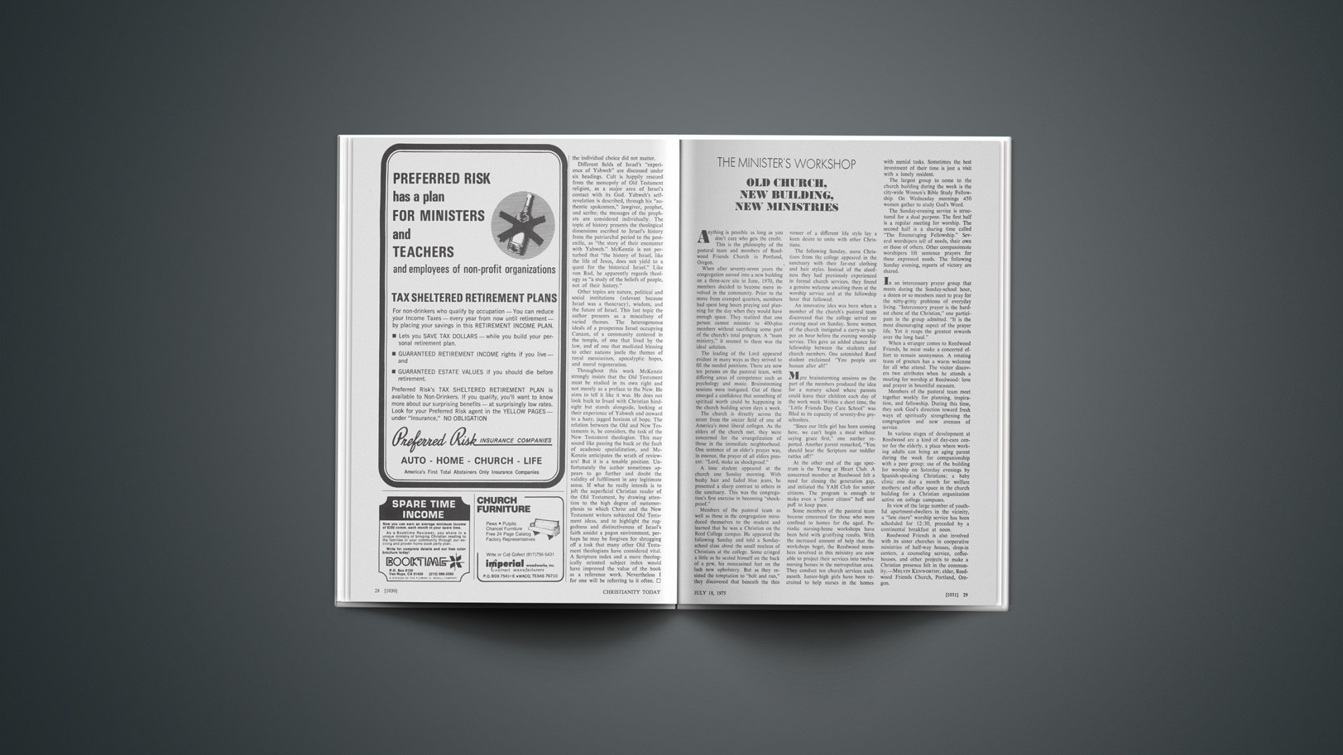 In various stages of development at Reedwood are a kind of day-care center for the elderly, a place where working adults can bring an aging parent during the week for companionship with a peer group; use of the building for worship on Saturday evenings by Spanish-speaking Christians; a baby clinic one day a month for welfare mothers; and office space in the church building for a Christian organization active on college campuses.