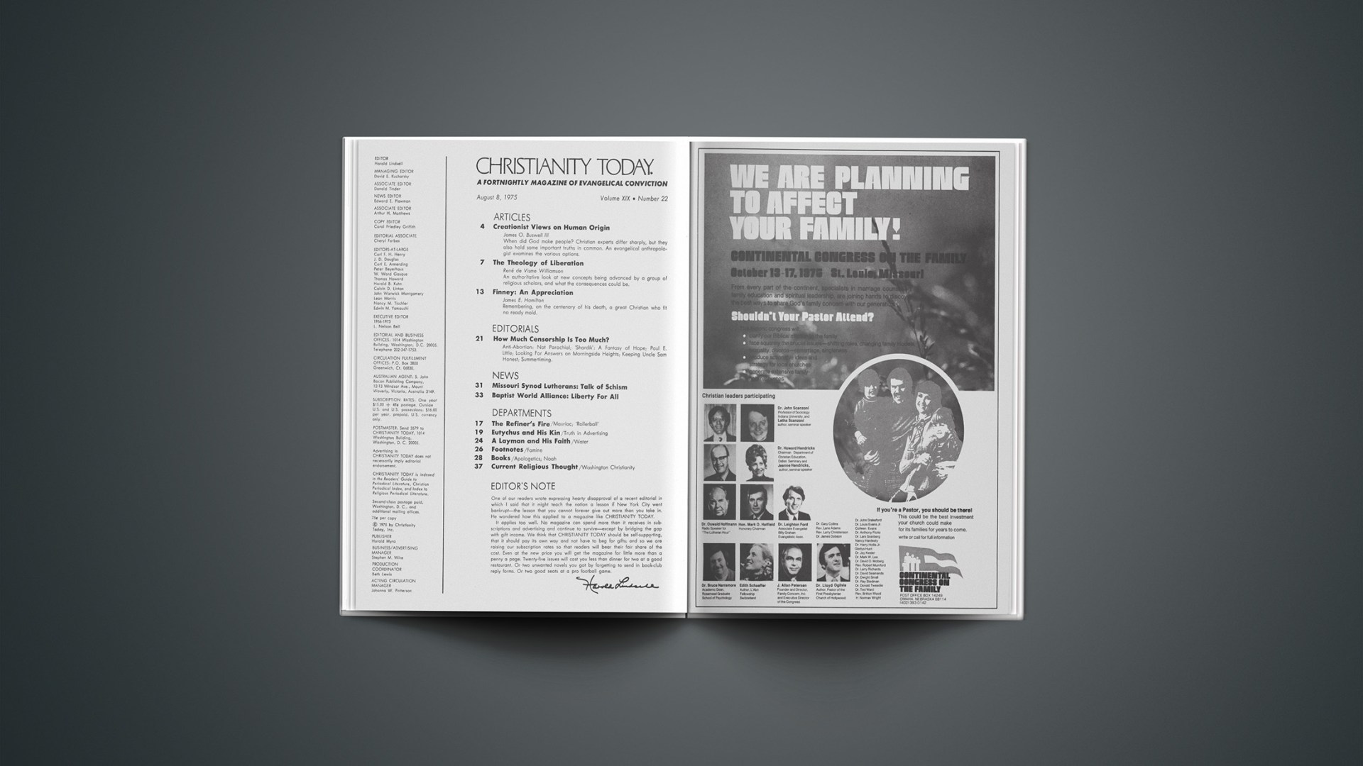 It applies too well. No magazine can spend more than it receives in subscriptions and advertising and continue to survive—except by bridging the gap with gift income. We think that CHRISTIANITY TODAY should be self-supporting, that it should pay its own way and not have to beg for gifts; and so we are raising our subscription rates so that readers will bear their fair share of the cost. Even at the new price you will get the magazine for little more than a penny a page. Twenty-five issues will cost you less than dinner for two at a good restaurant. Or two unwanted novels you got by forgetting to send in book-club reply forms. Or two good seats at a pro football game.