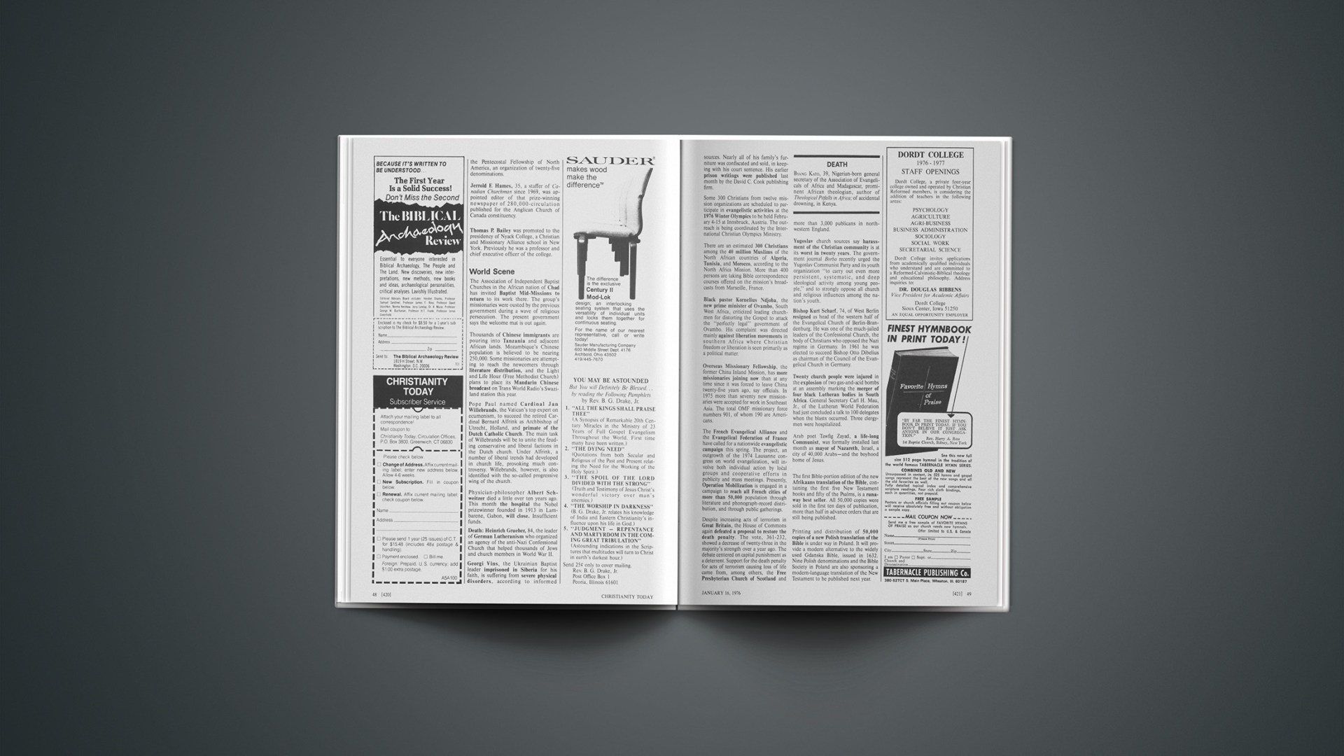 Christian and Missionary Alliance churches donated $600,000 in the last six months of 1975 to complete the denomination’s Operation Heartbeat program to aid refugees from Indochina. More than 7,000 were assisted, according to project director Louis T. Dechert, a CMA layman. Of these, some 1,800 were placed with CMA sponsors in North America. Nearly all of those sponsored were affiliated with the CMA’s churches in Cambodia and South Viet Nam.