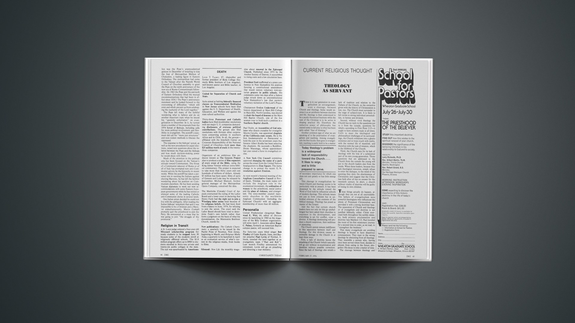 In Matthew 24 Jesus describes two types of servants of the Lord. The first one is forgetful of his Master, eats and drinks with strangers, and beats his own people. The other one faithfully follows his Lord’s commission to feed his fellow servants at the proper time. These two figures to my mind also represent the alternatives facing the theologian. He can live one way or the other. His true calling, though, is expressed in Christ’s words addressed to Peter: “Once you have been converted, strengthen your brethren!” It is expressed also in those parallel words spoken after his resurrection when he thrice asked Peter “Do you love me?” and finally commissioned him to “feed my sheep, feed my lambs.”