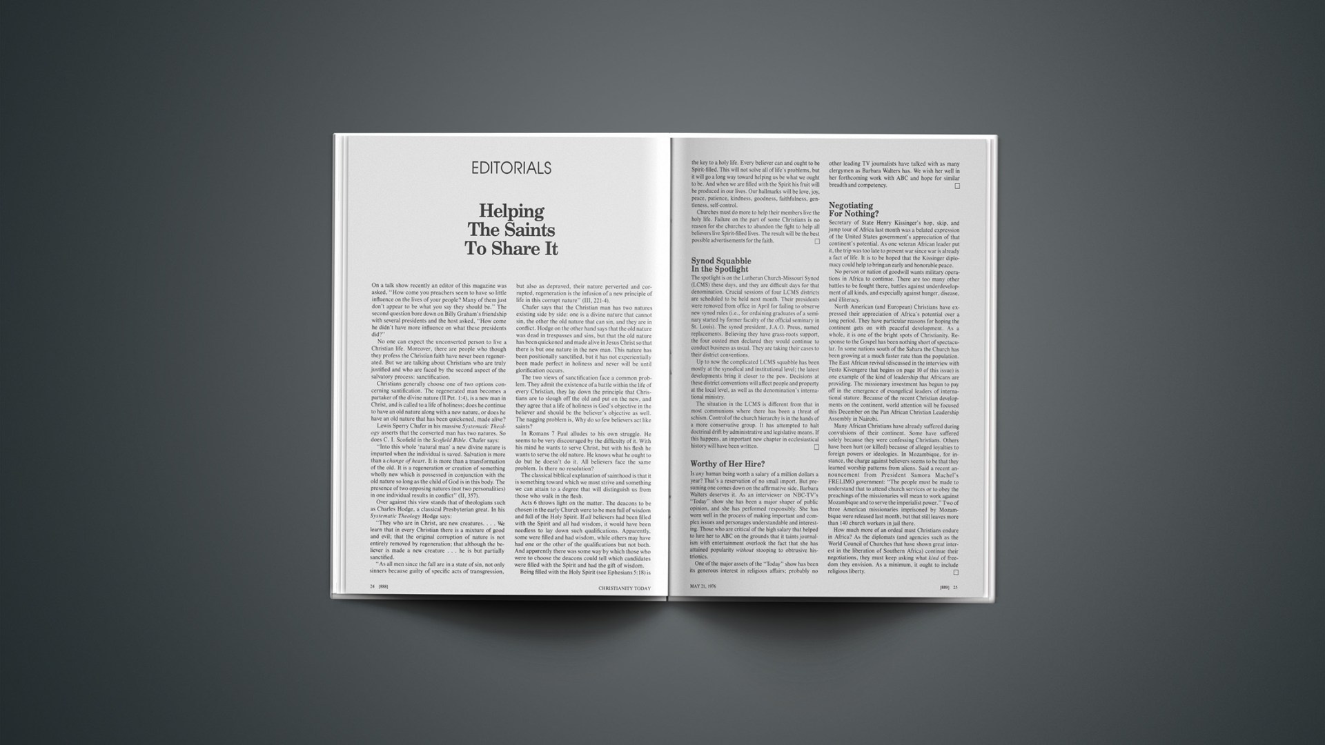 Many African Christians have already suffered during convulsions of their continent. Some have suffered solely because they were confessing Christians. Others have been hurt (or killed) because of alleged loyalties to foreign powers or ideologies. In Mozambique, for instance, the charge against believers seems to be that they learned worship patterns from aliens. Said a recent announcement from President Samora Machel’s FRELIMO government: “The people must be made to understand that to attend church services or to obey the preachings of the missionaries will mean to work against Mozambique and to serve the imperialist power.” Two of three American missionaries imprisoned by Mozambique were released last month, but that still leaves more than 140 church workers in jail there.