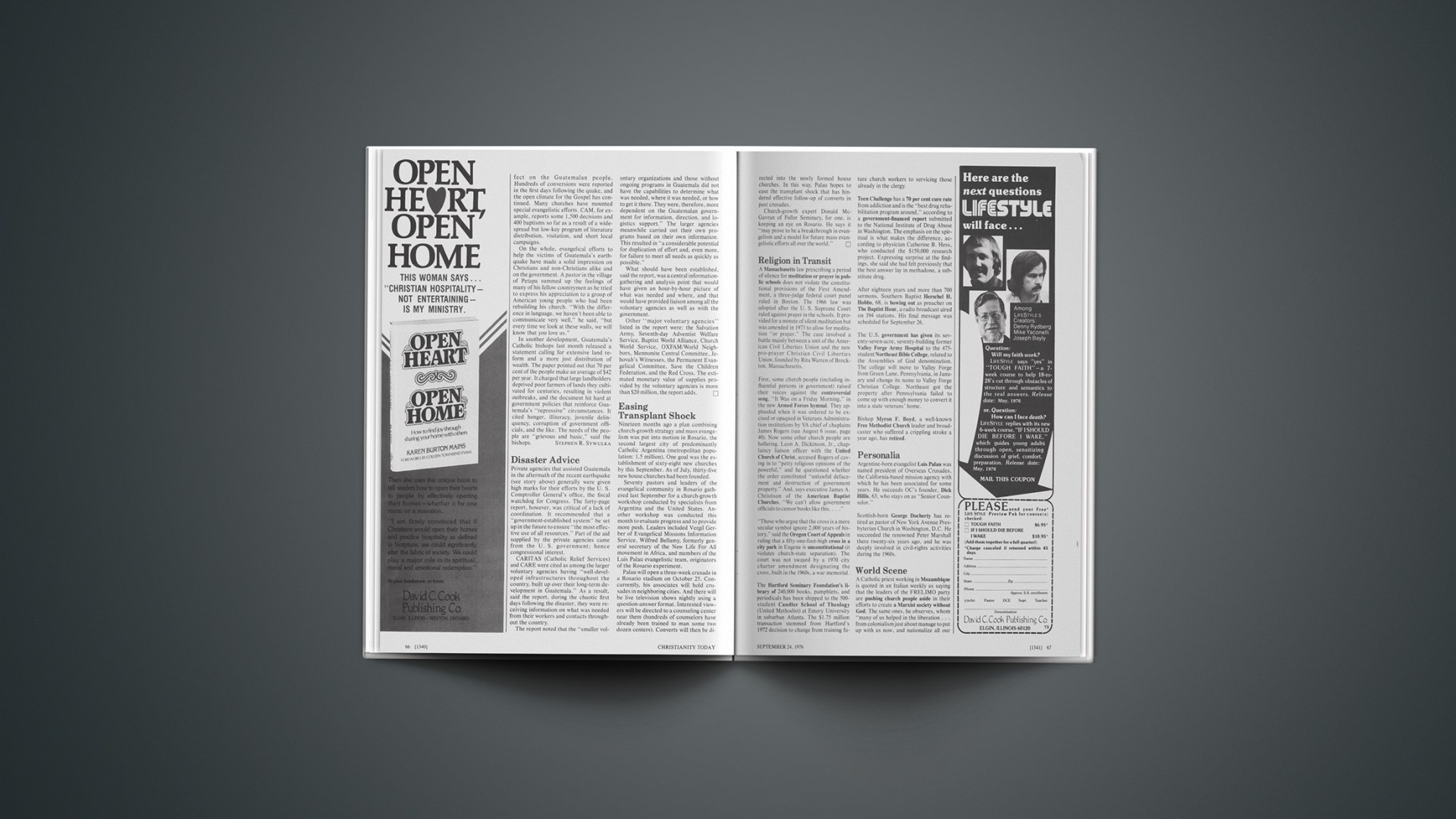 On the whole, evangelical efforts to help the victims of Guatemala’s earthquake have made a solid impression on Christians and non-Christians alike and on the government. A pastor in the village of Petapa summed up the feelings of many of his fellow countrymen as he tried to express his appreciation to a group of American young people who had been rebuilding his church. “With the difference in language, we haven’t been able to communicate very well,” he said, “but every time we look at these walls, we will know that you love us.”
