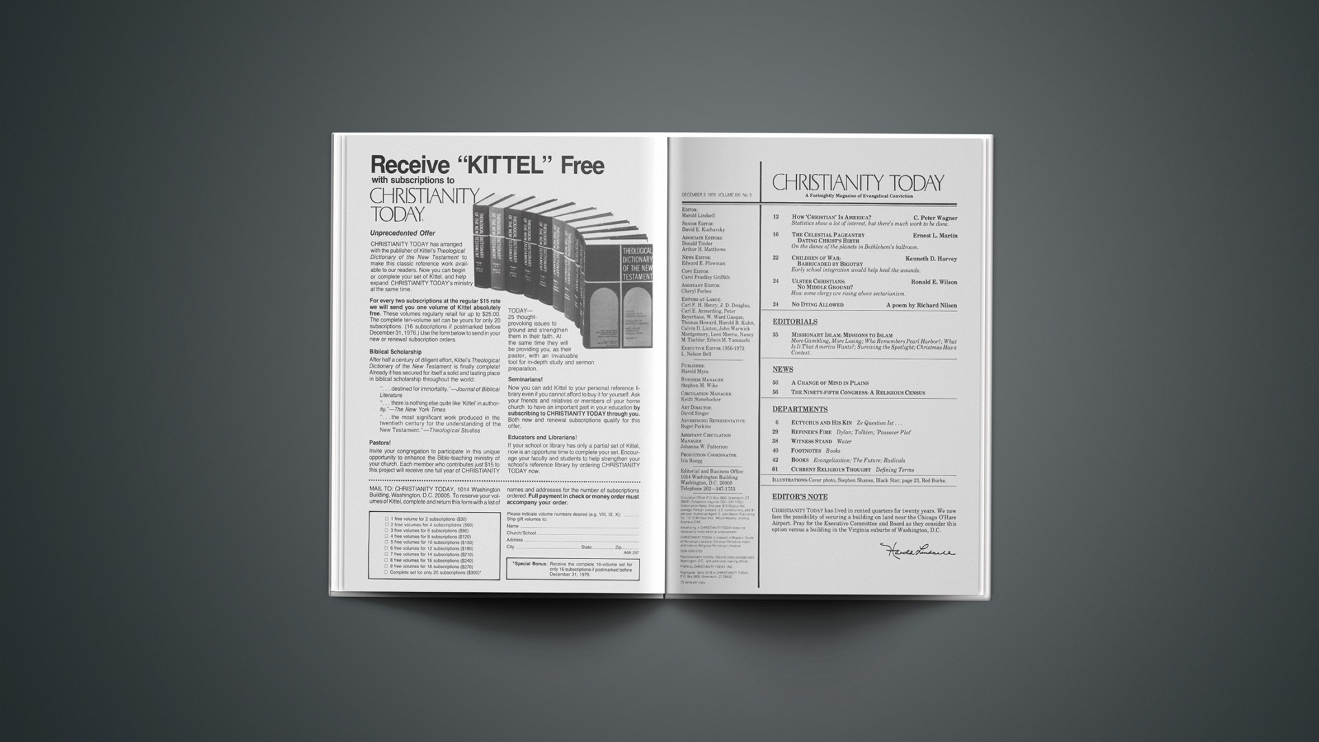 CHRISTIANITY TODAY has lived in rented quarters for twenty years. We now face the possibility of securing a building on land near the Chicago O’Hare Airport. Pray for the Executive Committee and Board as they consider this option versus a building in the Virginia suburbs of Washington, D.C.