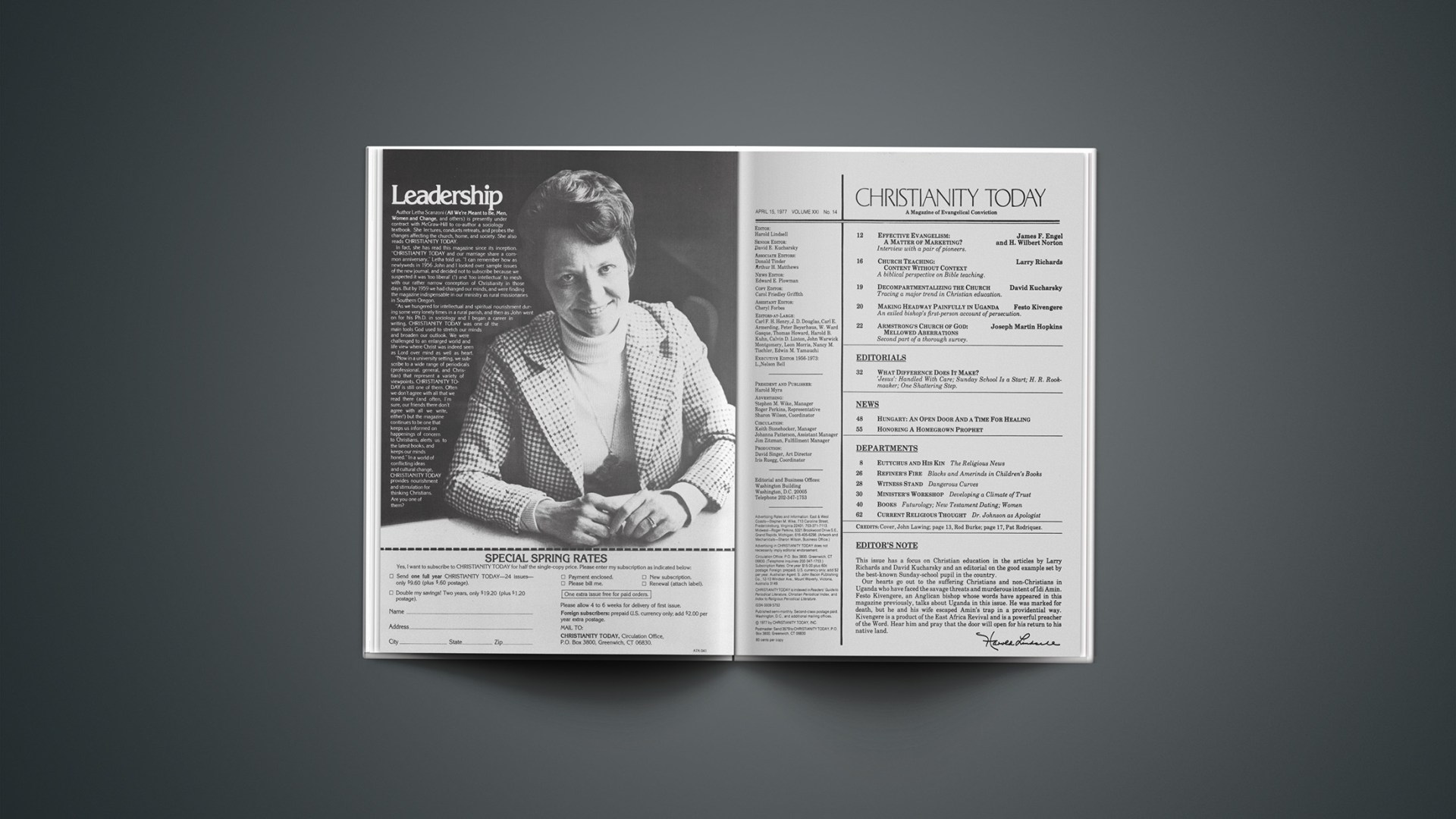 This issue has a focus on Christian education in the articles by Larry Richards and David Kucharsky and an editorial on the good example set by the best-known Sunday-school pupil in the country.