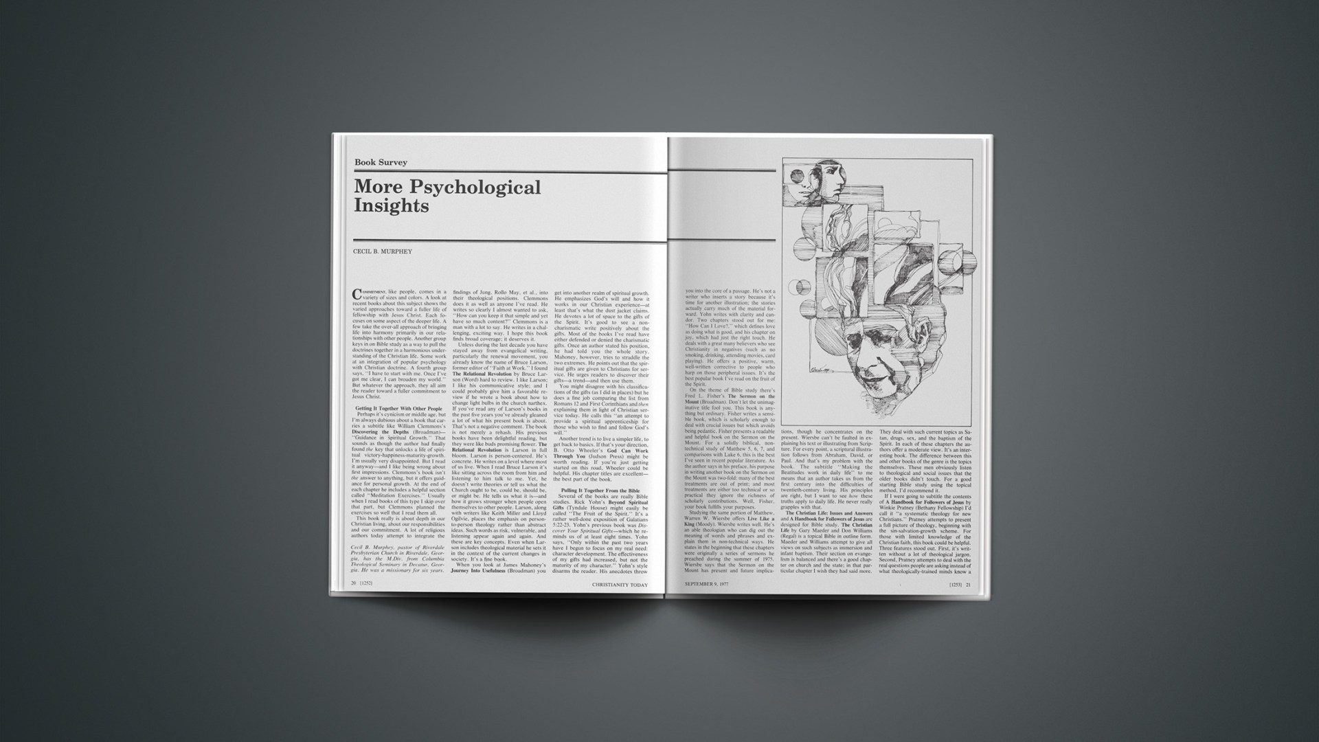 Perhaps it’s cynicism or middle age, but I’m always dubious about a book that carries a subtitle like William Clemmons’s Discovering the Depths (Broadman)—“Guidance in Spiritual Growth.” That sounds as though the author had finally found the key that unlocks a life of spiritual victory-happiness-maturity-growth. I’m usually very disappointed. But I read it anyway—and I like being wrong about first impressions. Clemmons’s book isn’t the answer to anything, but it offers guidance for personal growth. At the end of each chapter he includes a helpful section called “Meditation Exercises.” Usually when I read books of this type I skip over that part, but Clemmons planned the exercises so well that I read them all.